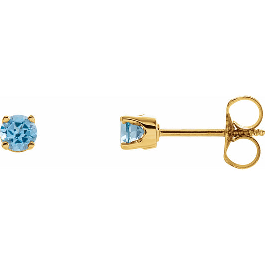 14K Yellow 3 mm Round Swiss Blue Topaz Youth Birthstone Earrings
