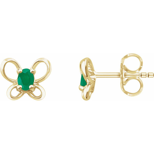14K Yellow 4x3 mm Oval May Youth Butterfly Birthstone Earrings