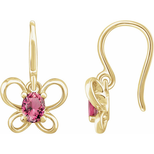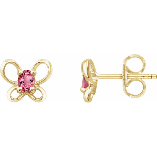 14K Yellow 4x3 mm Oval October Youth Butterfly Birthstone Earrings