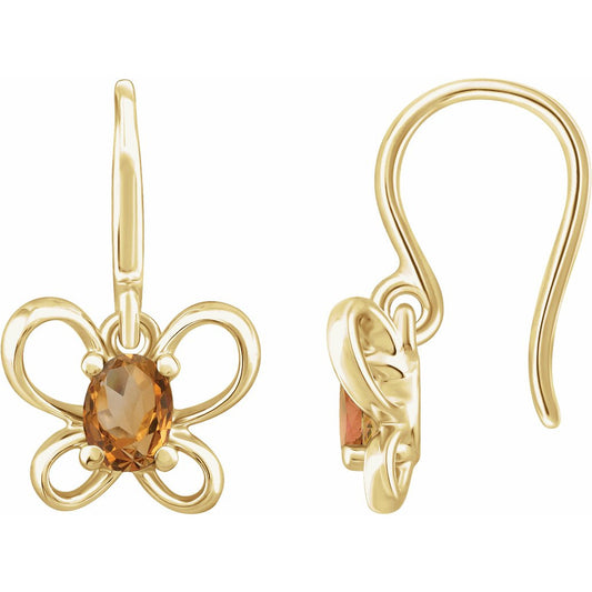 14K Yellow 4x3 mm Oval November Youth Butterfly Birthstone Earrings