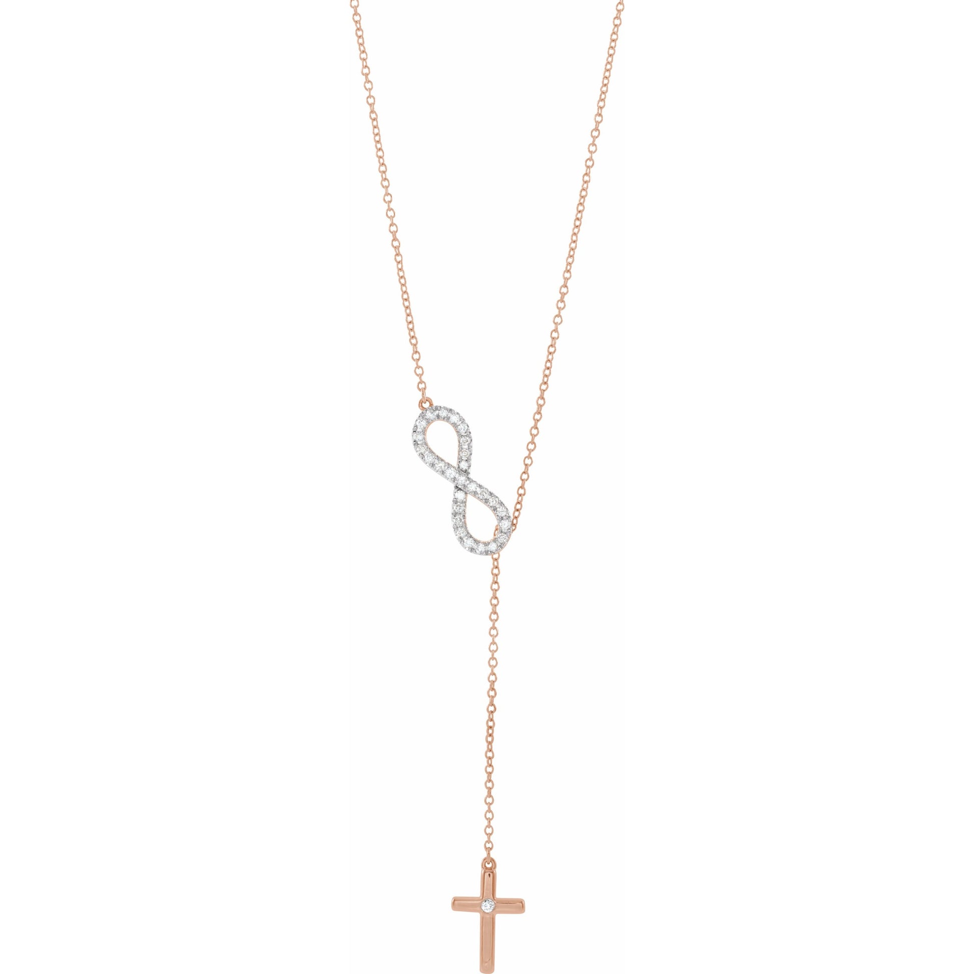 14K Rose 1/5 CTW Diamond Infinity-Inspired Cross 16-18 Necklace