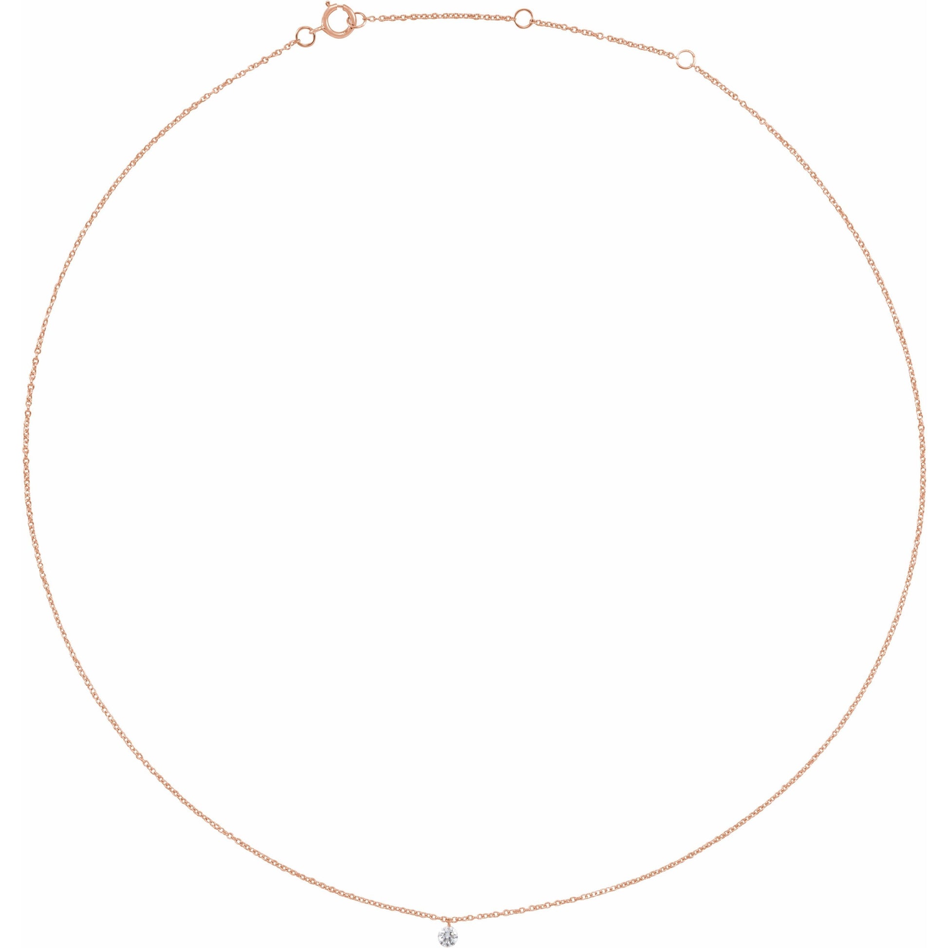 14K Rose 1/6 CT Drilled Diamond Solitaire 16-18 Necklace