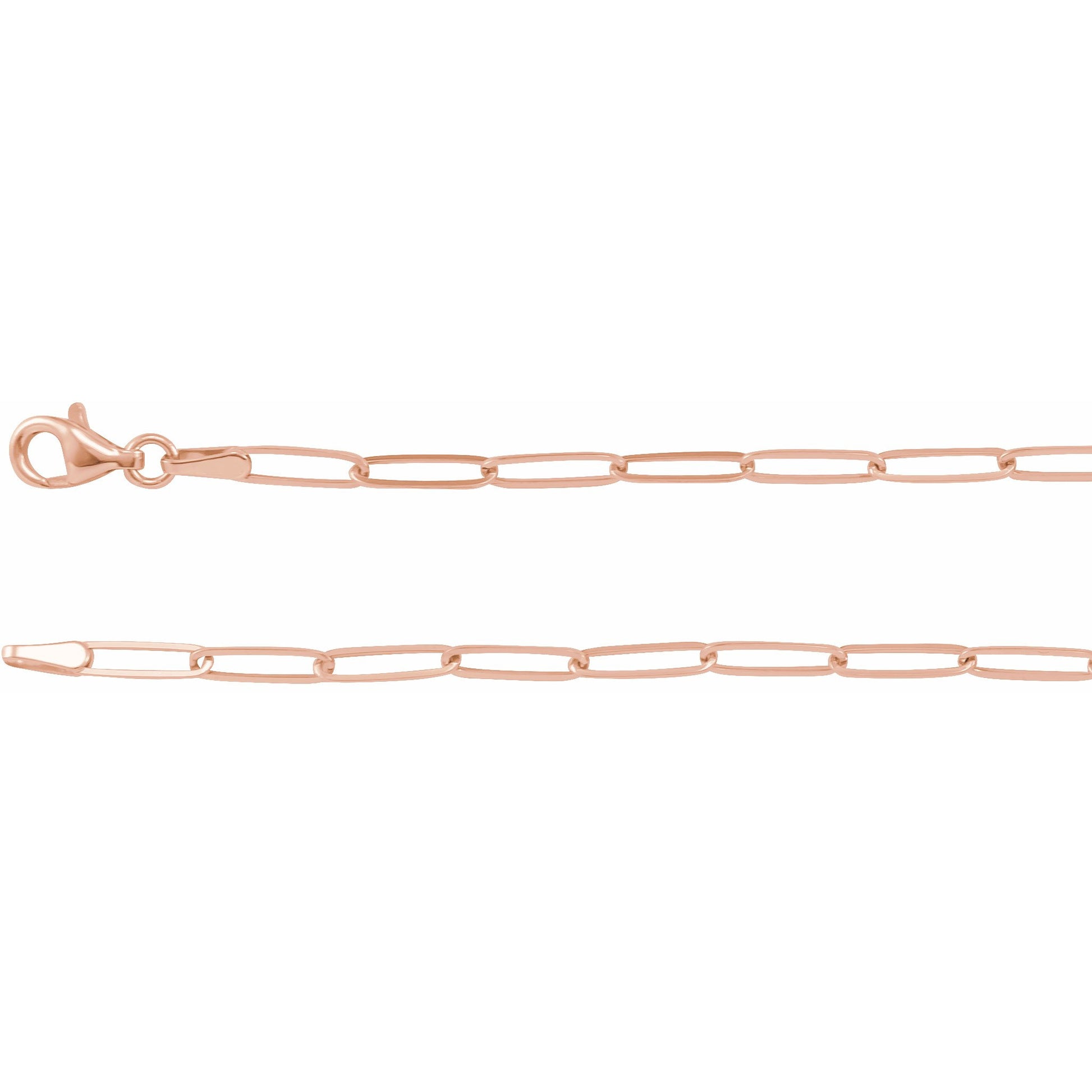 14K Rose 2.6 mm Elongated Link Chain 7 Bracelet