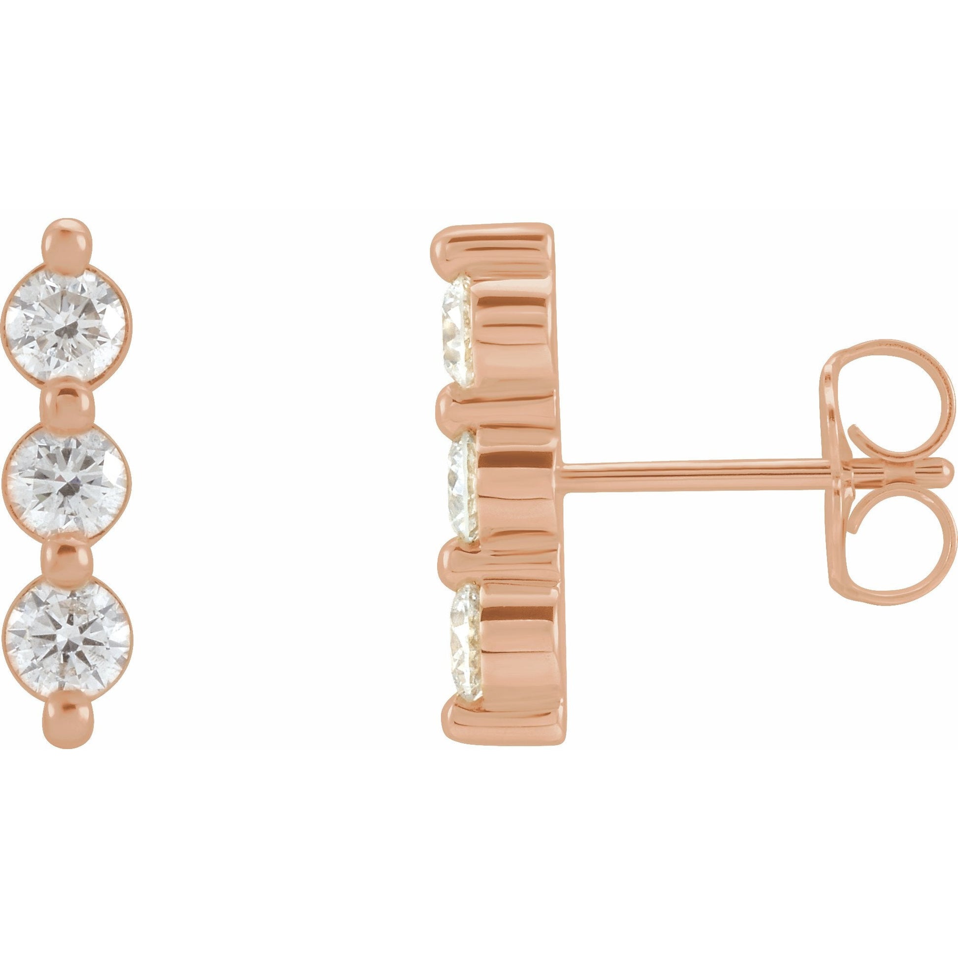 14K Rose 5/8 CTW Diamond Three-Stone Bar Earrings