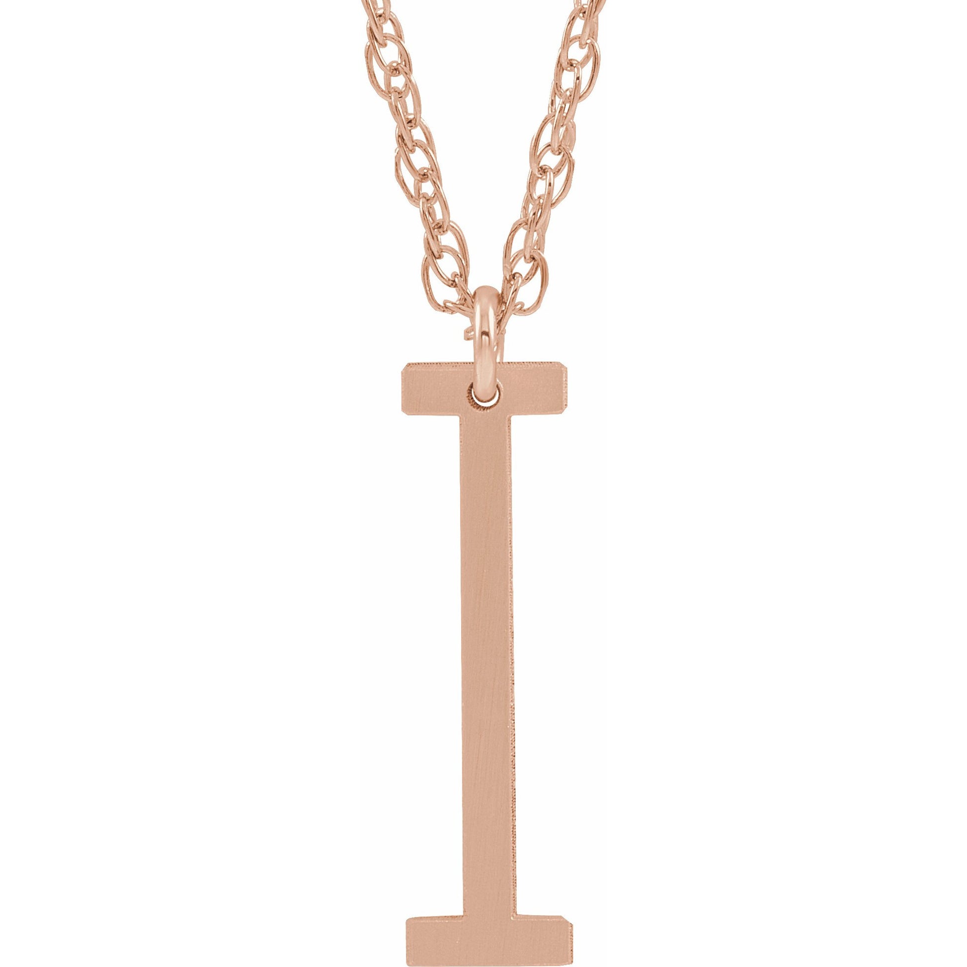 14K Rose Block Initial I 16-18 Necklace with Brush Finish