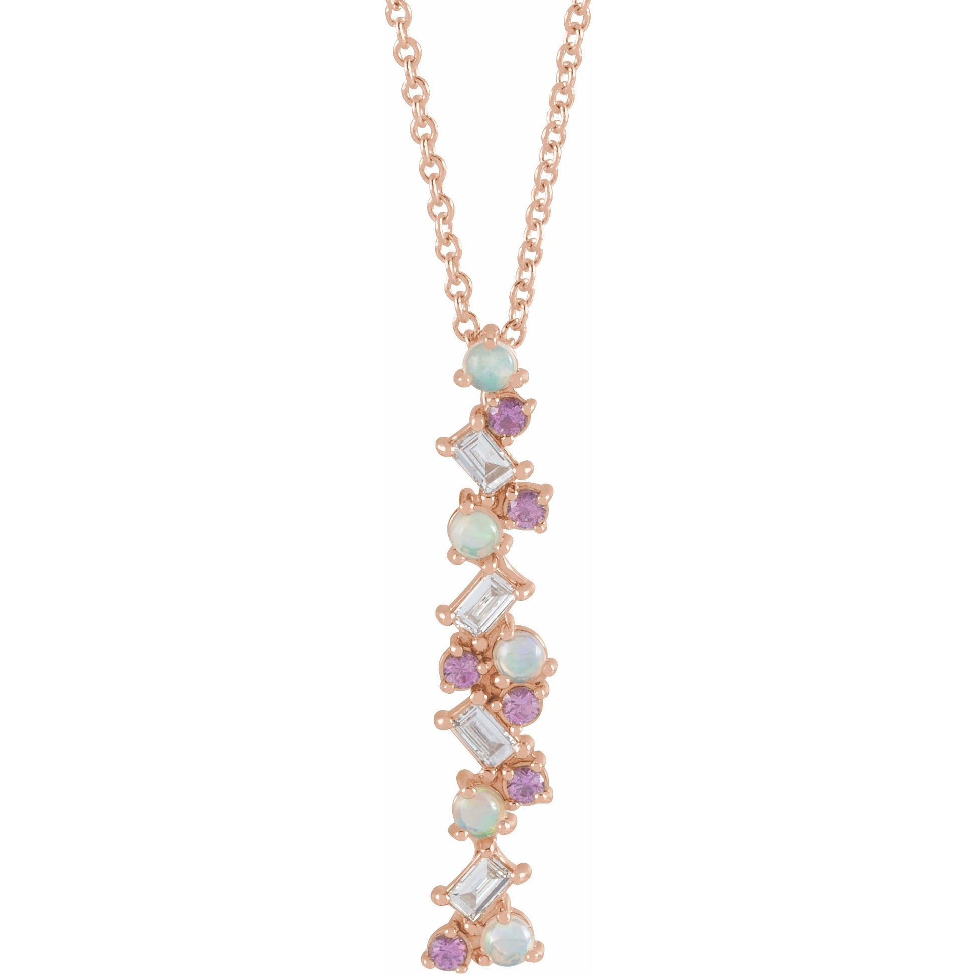 87049 / Necklace / Set / 14K Rose / Ethiopian Opals, Pink Sapphires, Diamonds / 16-18 In / Si2-Si3, Ghi :: 1/8 Ctw / Polished / Scattered Multi-Gemstone Necklace