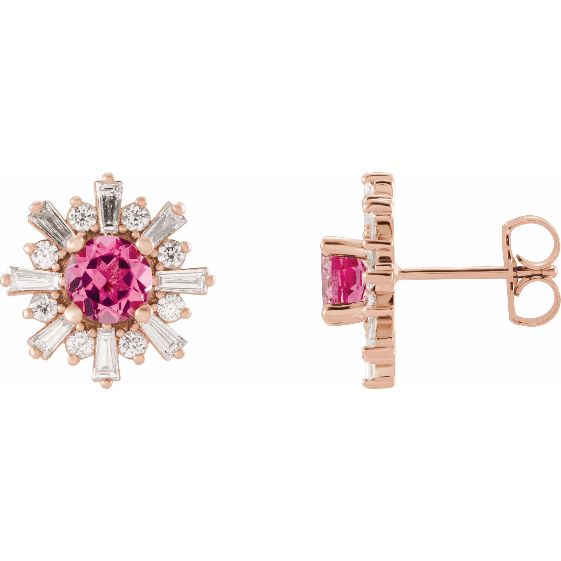 86982 / Set / 14K Rose / Pink Tourmaline / 5 Mm / Pair / Polished / Genuine Pink Tourmaline And 3/4 Ctw Diamond Earrings