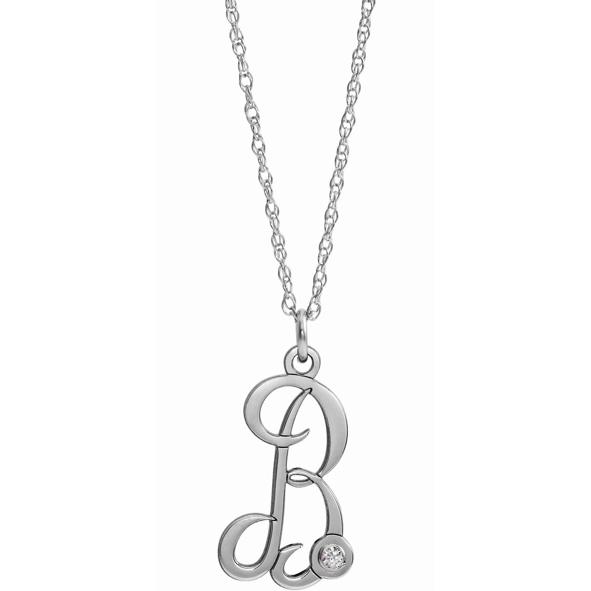 653575 / 14K White / B / 16-18 In / Polished / .02 Ct Diamond Accented Script Initial Necklace