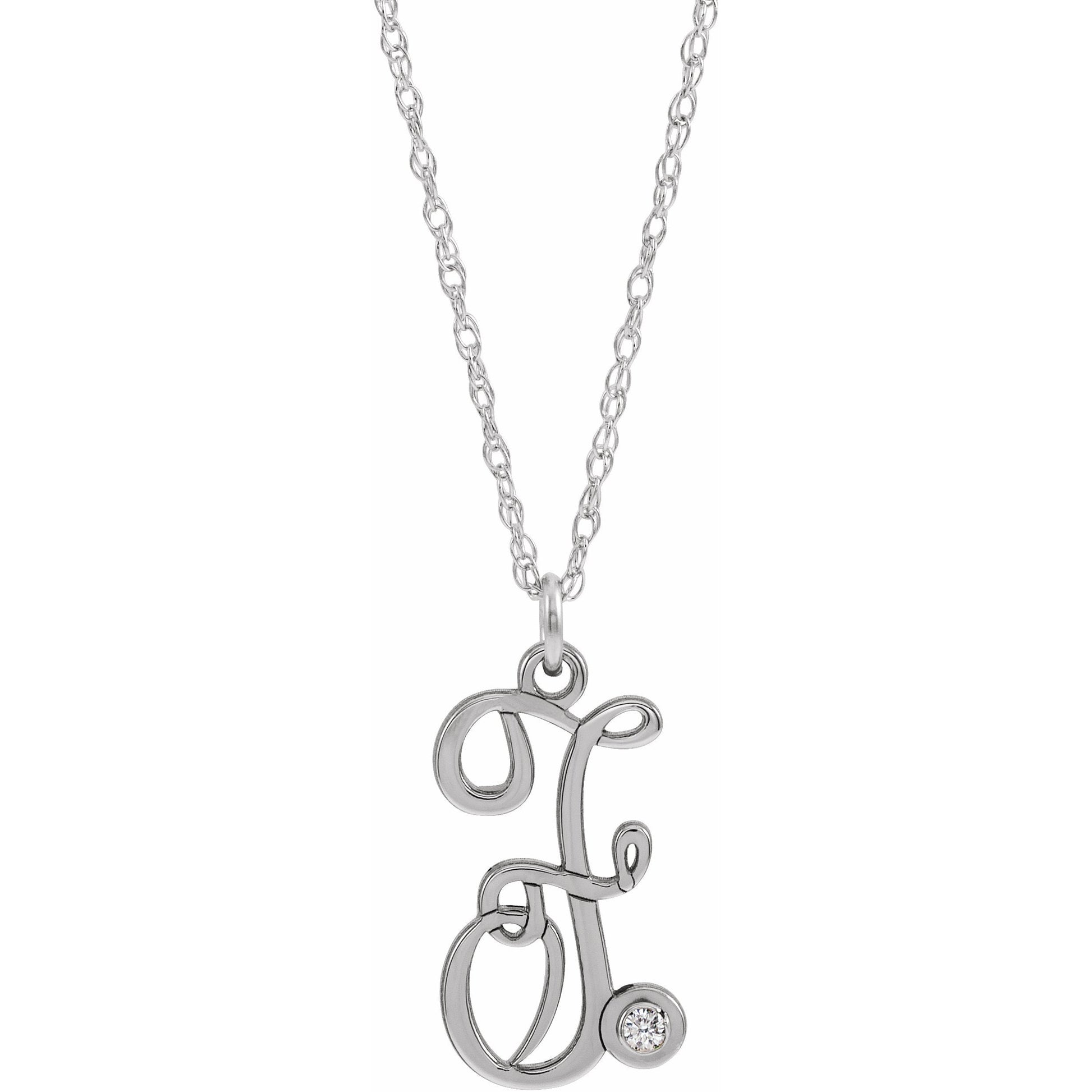 653575 / 14K White / F / 16-18 In / Polished / .02 Ct Diamond Accented Script Initial Necklace