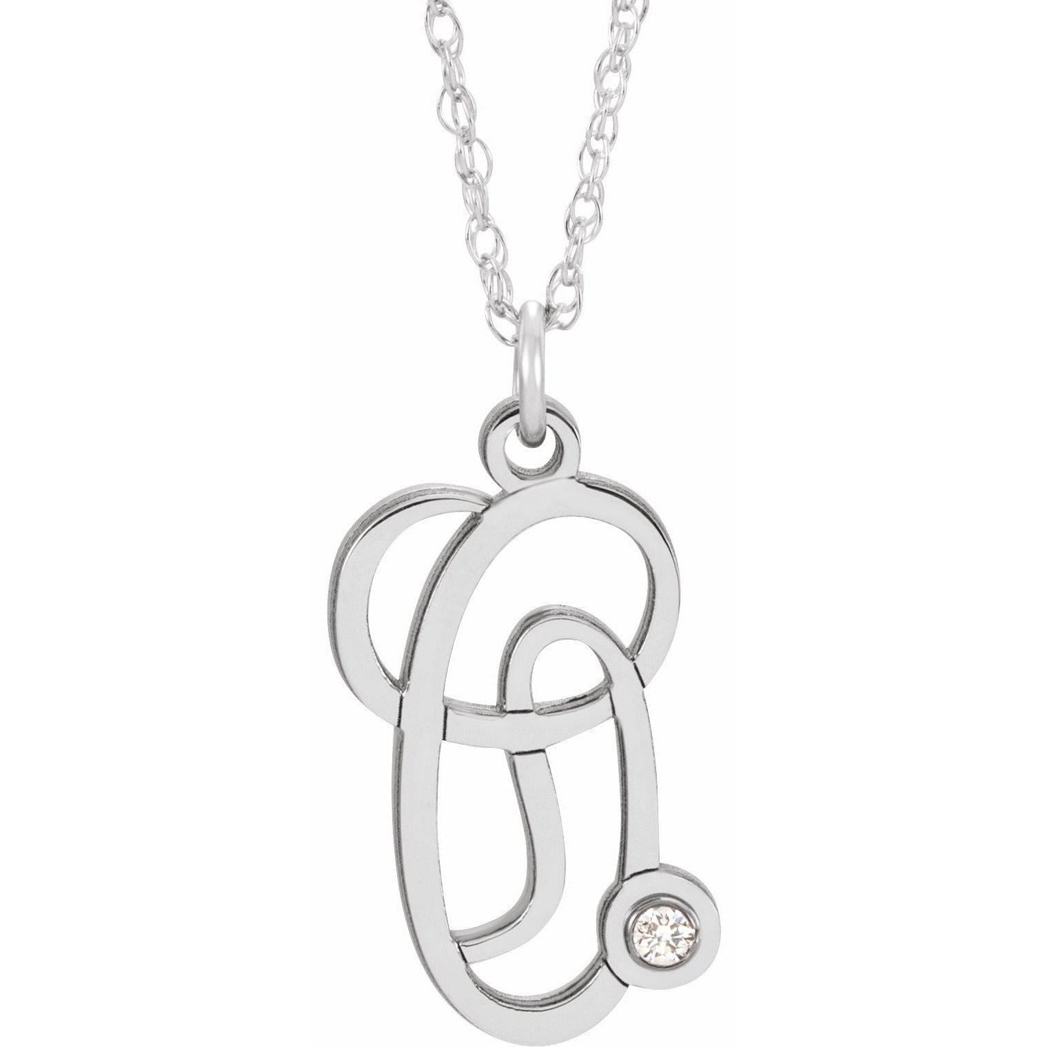 653575 / 14K White / O / 16-18 In / Polished / .02 Ct Diamond Accented Script Initial Necklace