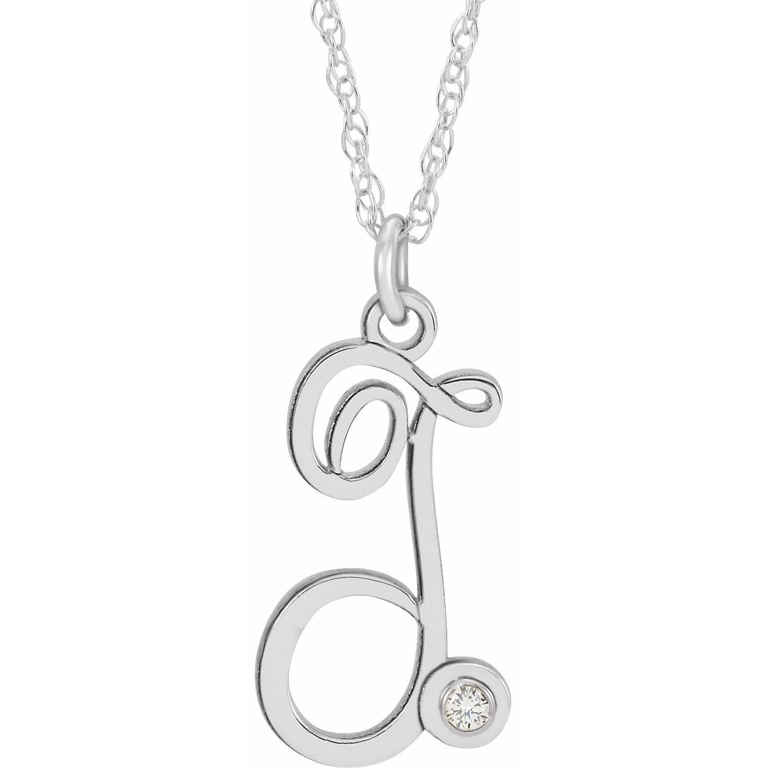 653575 / 14K White / T / 16-18 In / Polished / .02 Ct Diamond Accented Script Initial Necklace
