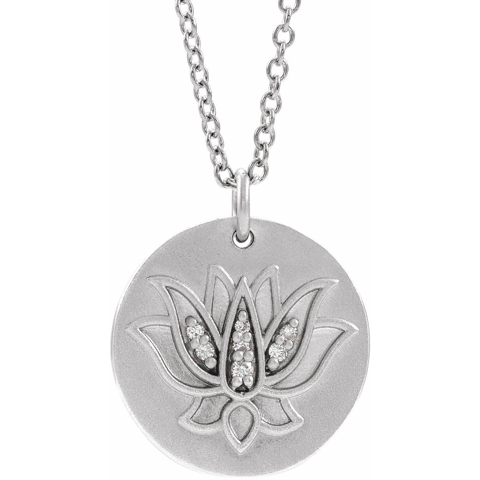 86975 / Necklace / Set / 14K White / 13 Mm / 16-18 In / Polished / .025 Ctw Diamond Lotus Necklace