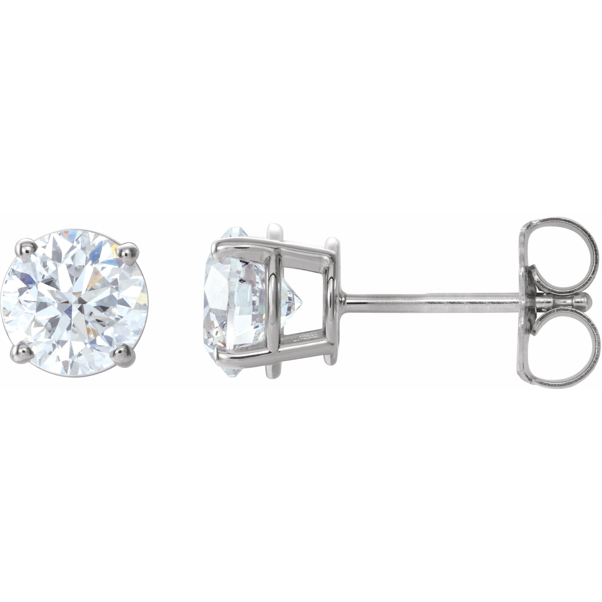1874 / 14K White / Set / Round / Diamond / Pair / 5.75Mm :: 1 1/2 Ctw / I2, G-H / Friction Post / Friction Backs Included / 4-Prong / Polished / Light Basket Solitaire Stud Earrings