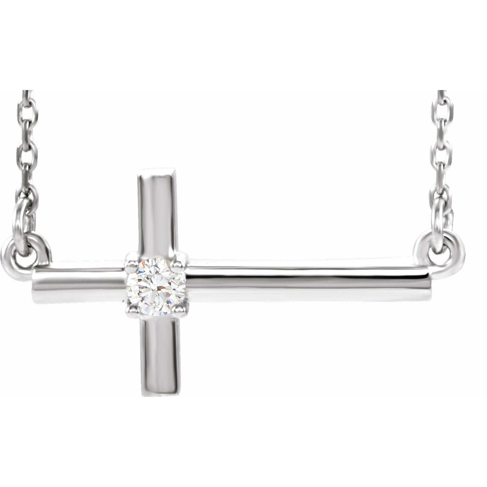 14K White 1/10 CTW Diamond Sideways Cross 16-18 Necklace