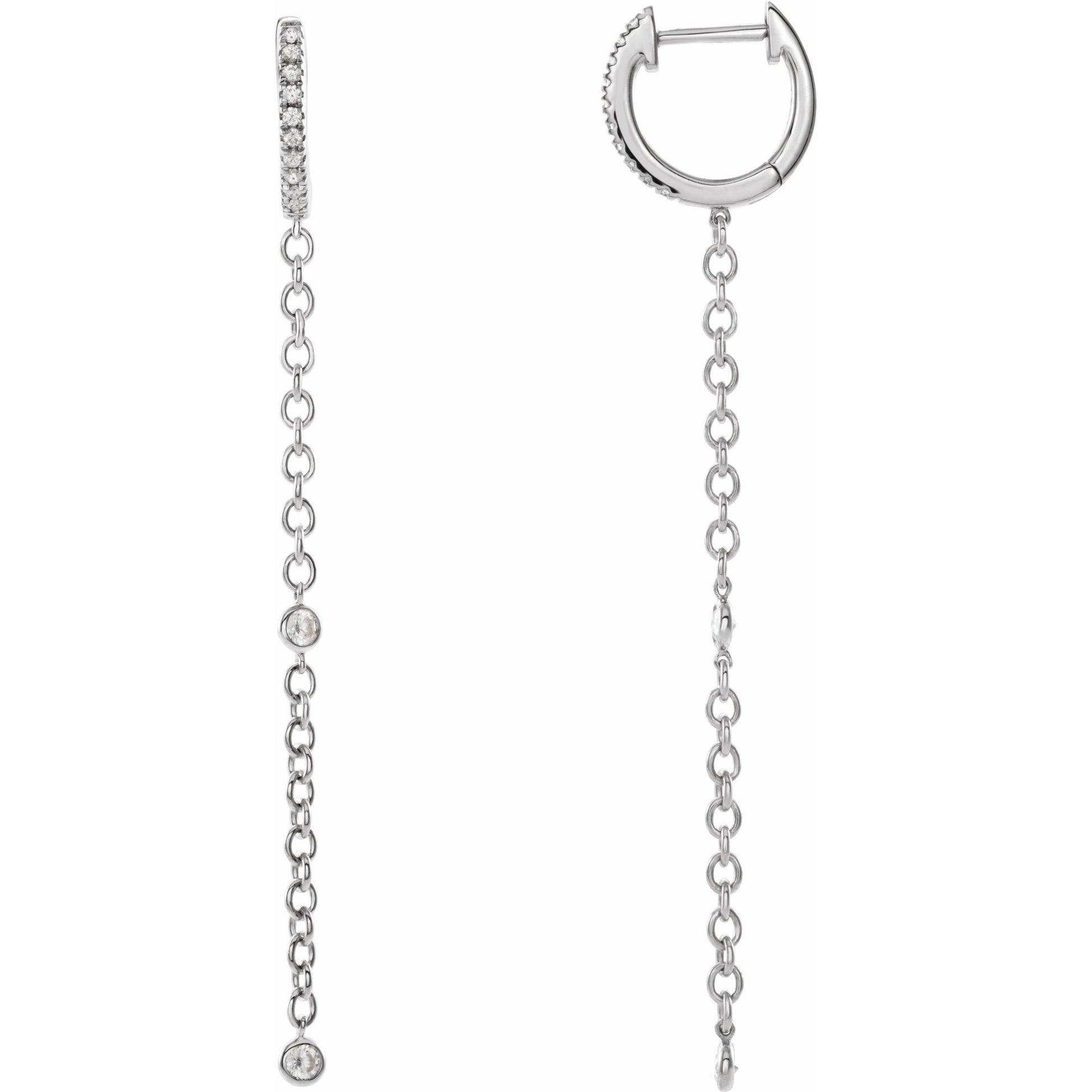 14K White 1/4 CTW Diamond Hinged Hoop Chain Earrings