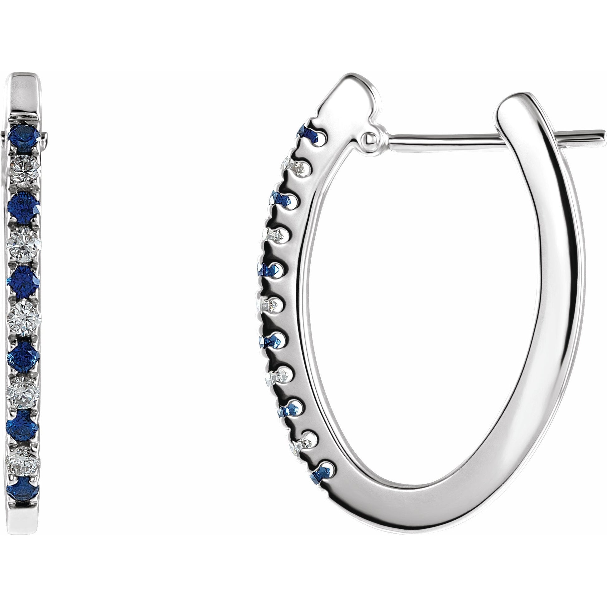61494 / Set / 14K White / Blue Sapphire / Genuine Diamond / 1/6 Ctw / Pair / Polished / Hoop Earrings
