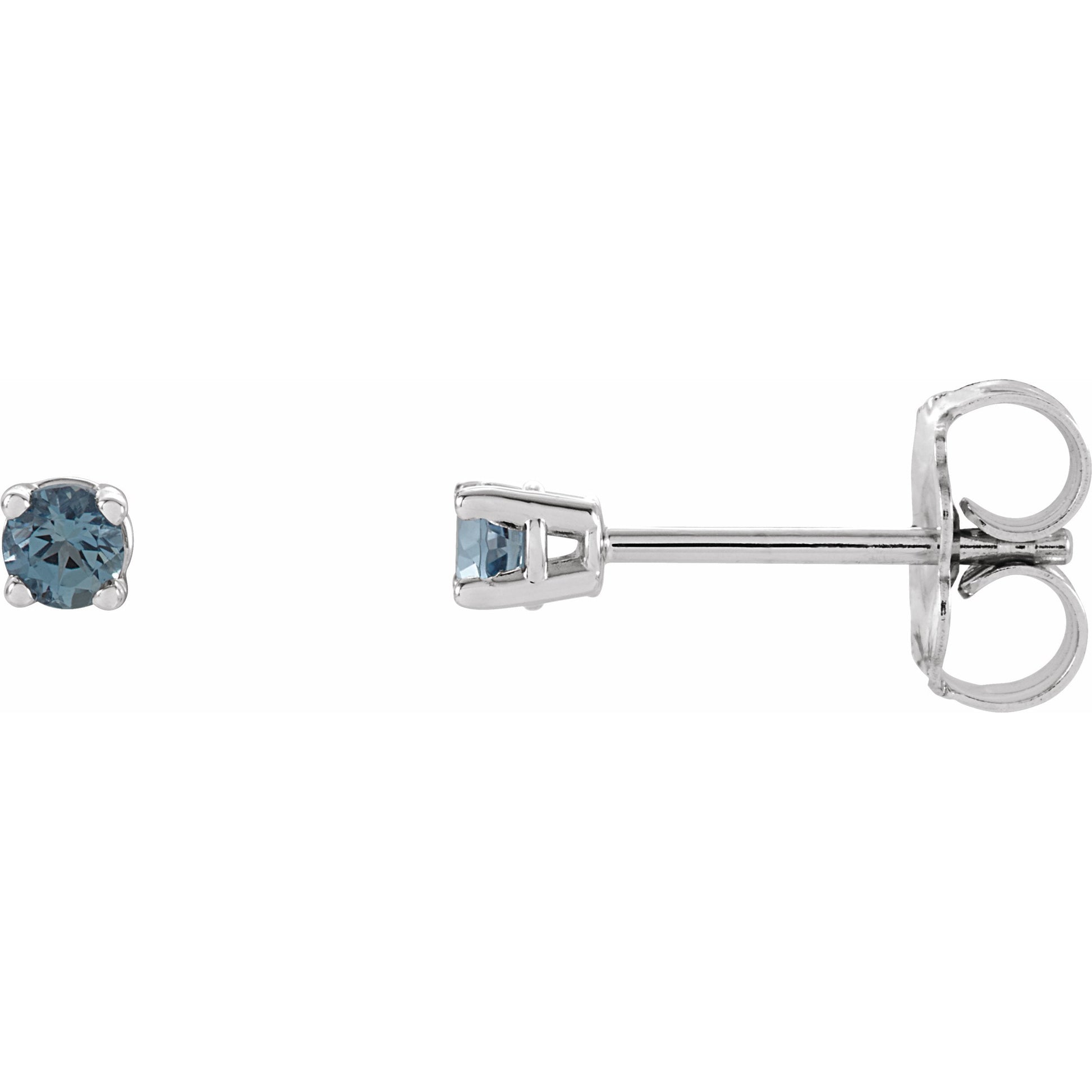 1874 / 14K White / Set / Round / Aquamarine / Pair / 2.5 Mm / Friction Post / Friction Backs Included / 4-Prong / Polished / Light Basket Solitaire Stud Earrings