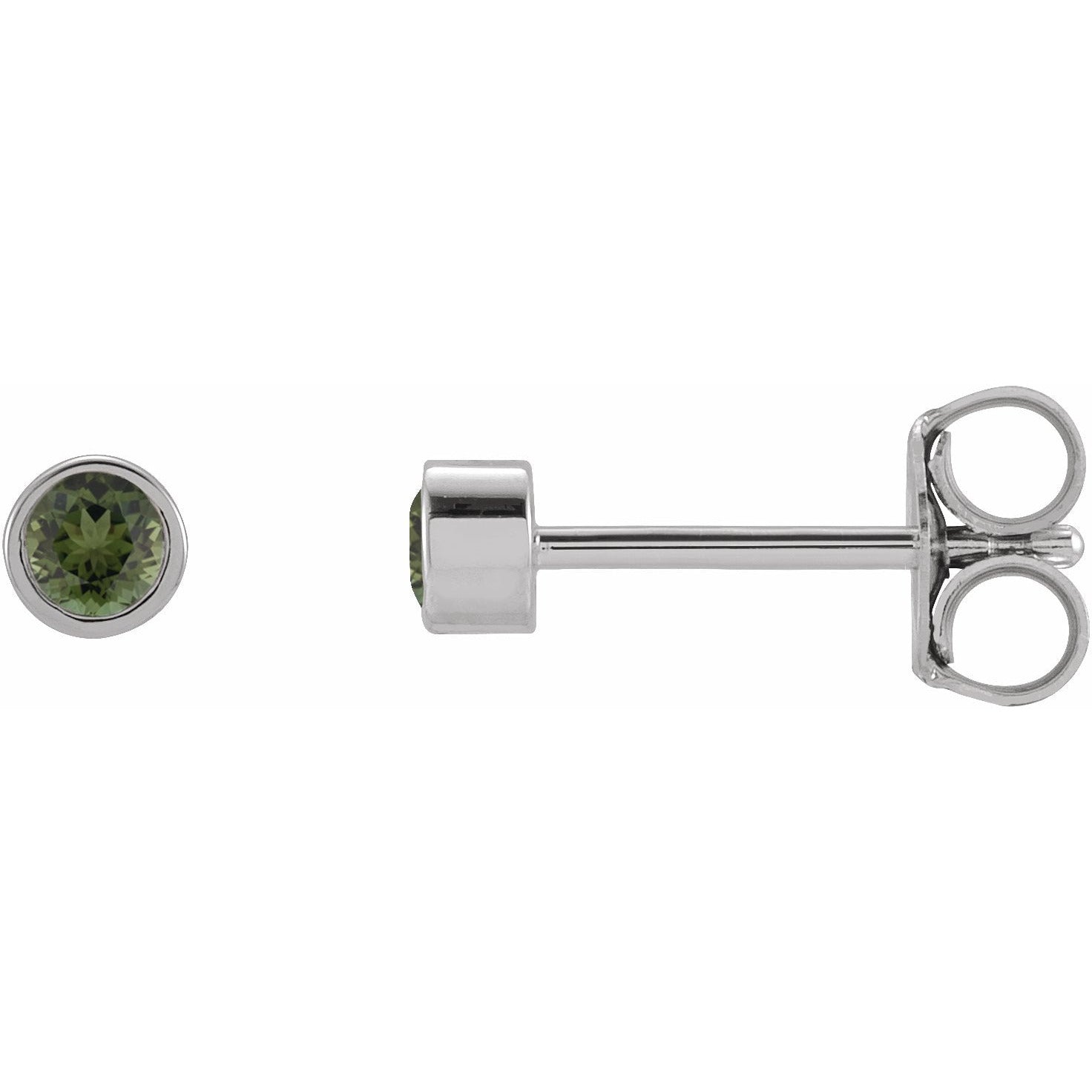 2000417 / Earring / Set / Green Tourmaline / Round / 2.5 Mm / 14K White / Pair / Friction Backs Included / Polished / Green Tourmaline Micro Bezel-Set Earrings
