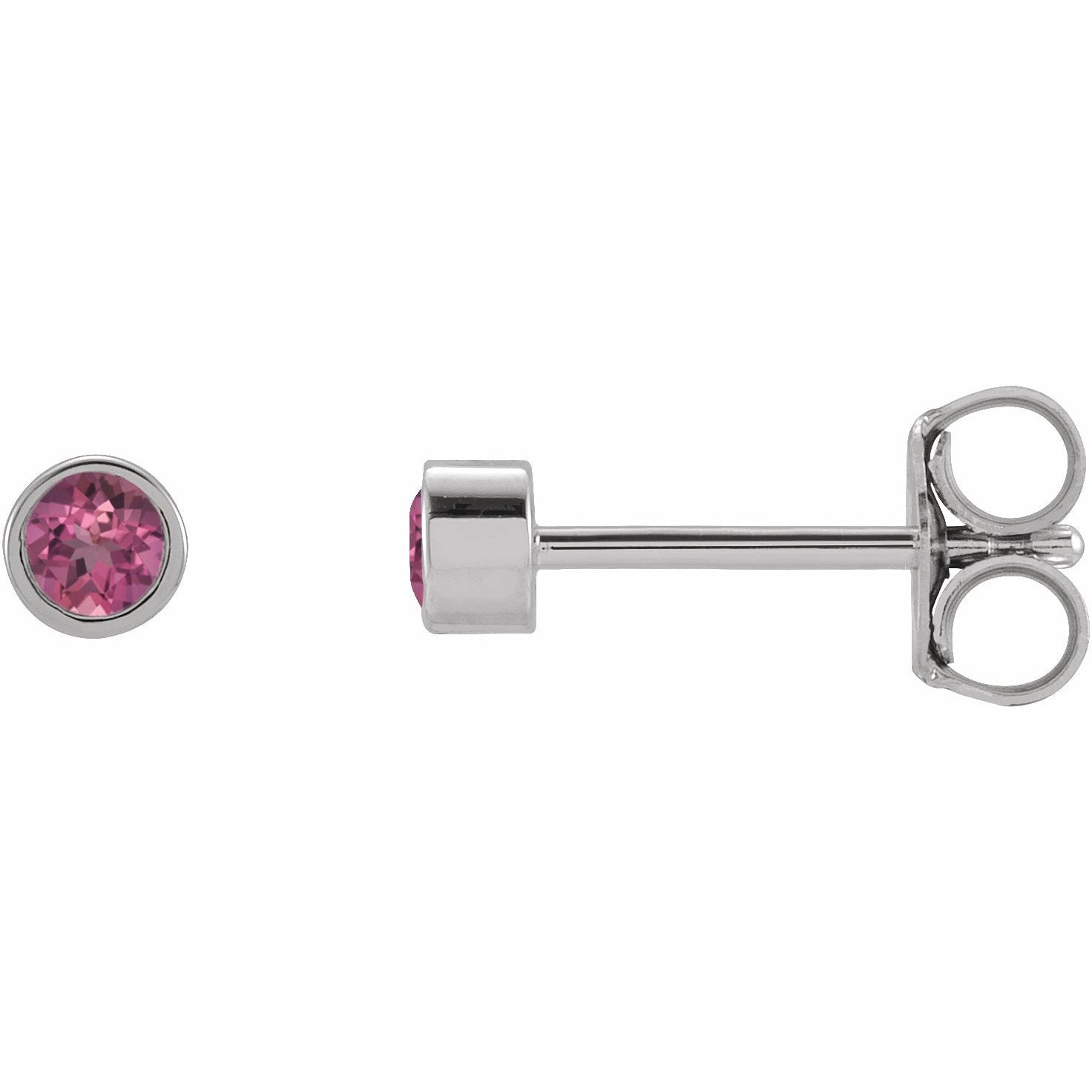 2000417 / Earring / Set / Pink Tourmaline / Round / 2.5 Mm / 14K White / Pair / Friction Backs Included / Polished / Pink Tourmaline Micro Bezel-Set Earrings