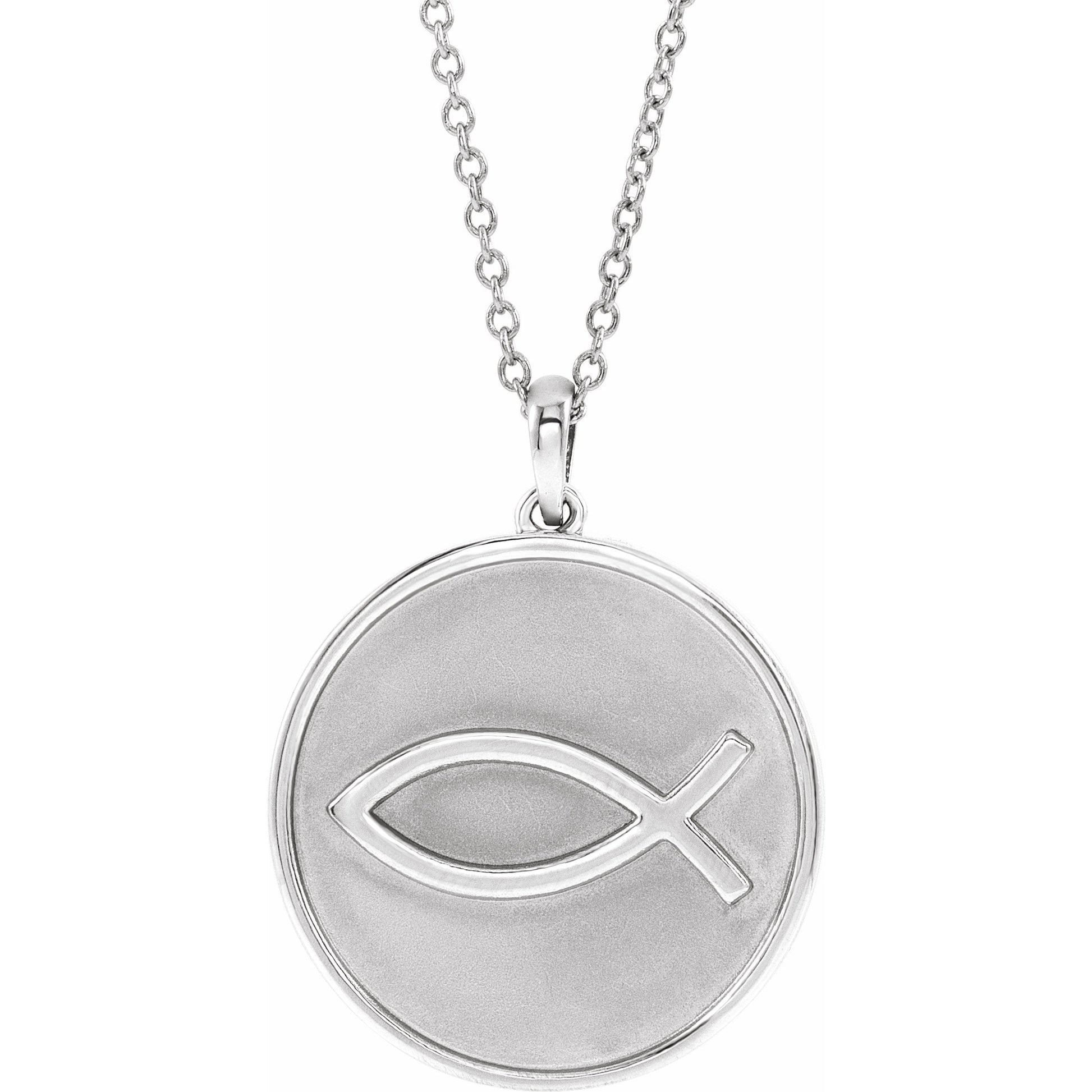 14K White 20.3x18.4 mm Ichthus (Fish) 16-18 Necklace