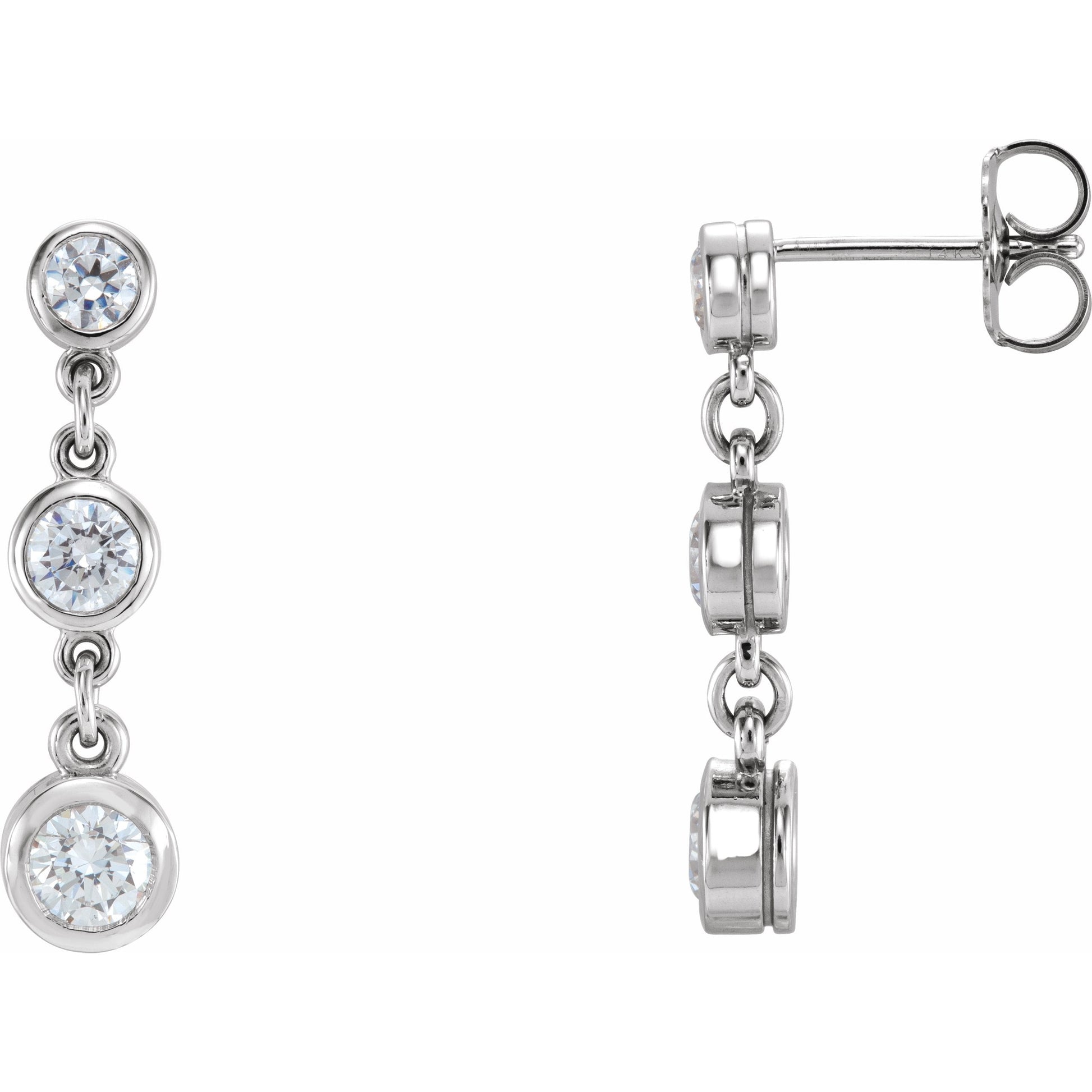 14K White 3 mm,3.5 mm & 4 mm Round Cubic Zirconia Bezel-Set Three-Stone Earrings