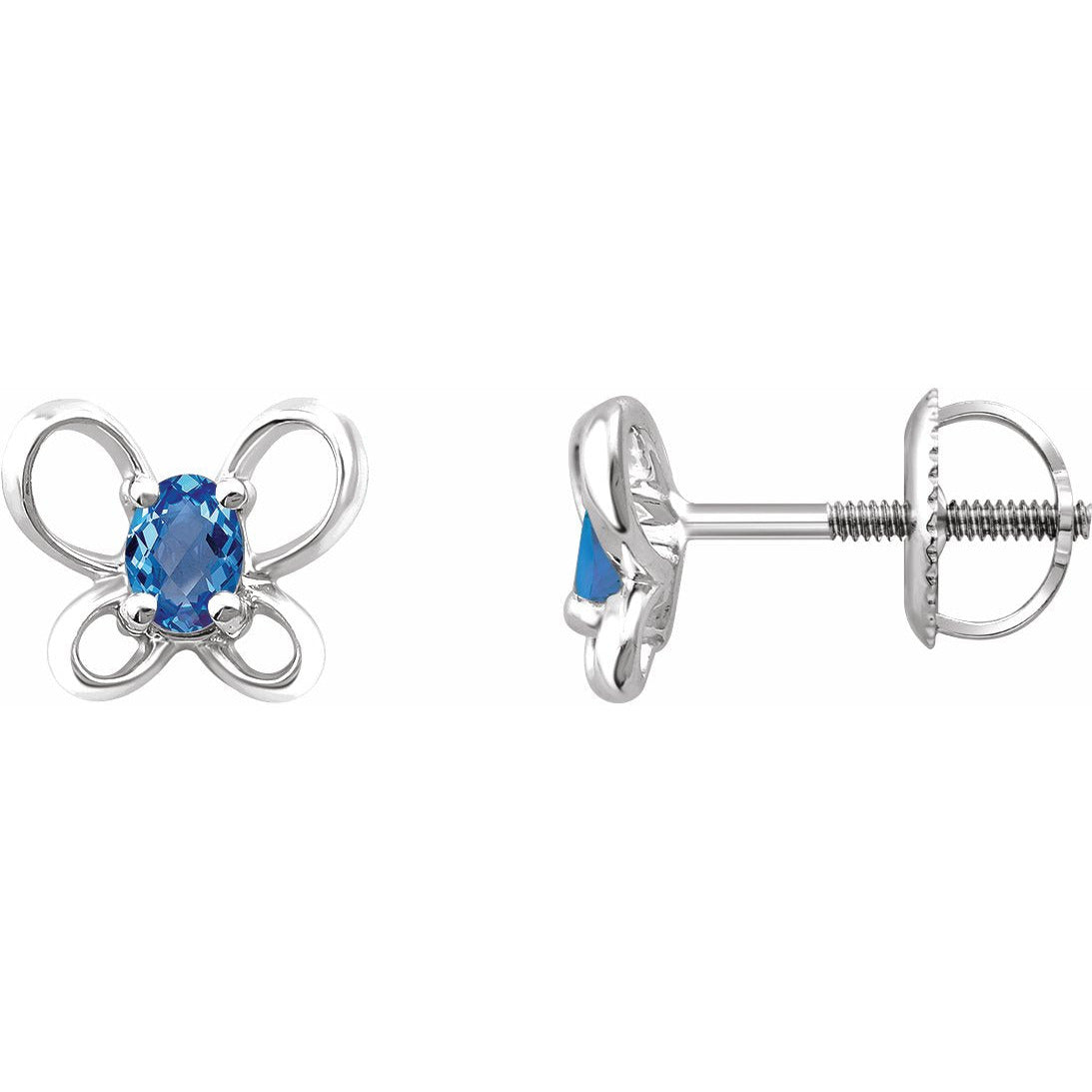 14K White 4x3 mm Oval December Youth Butterfly Birthstone Earrings