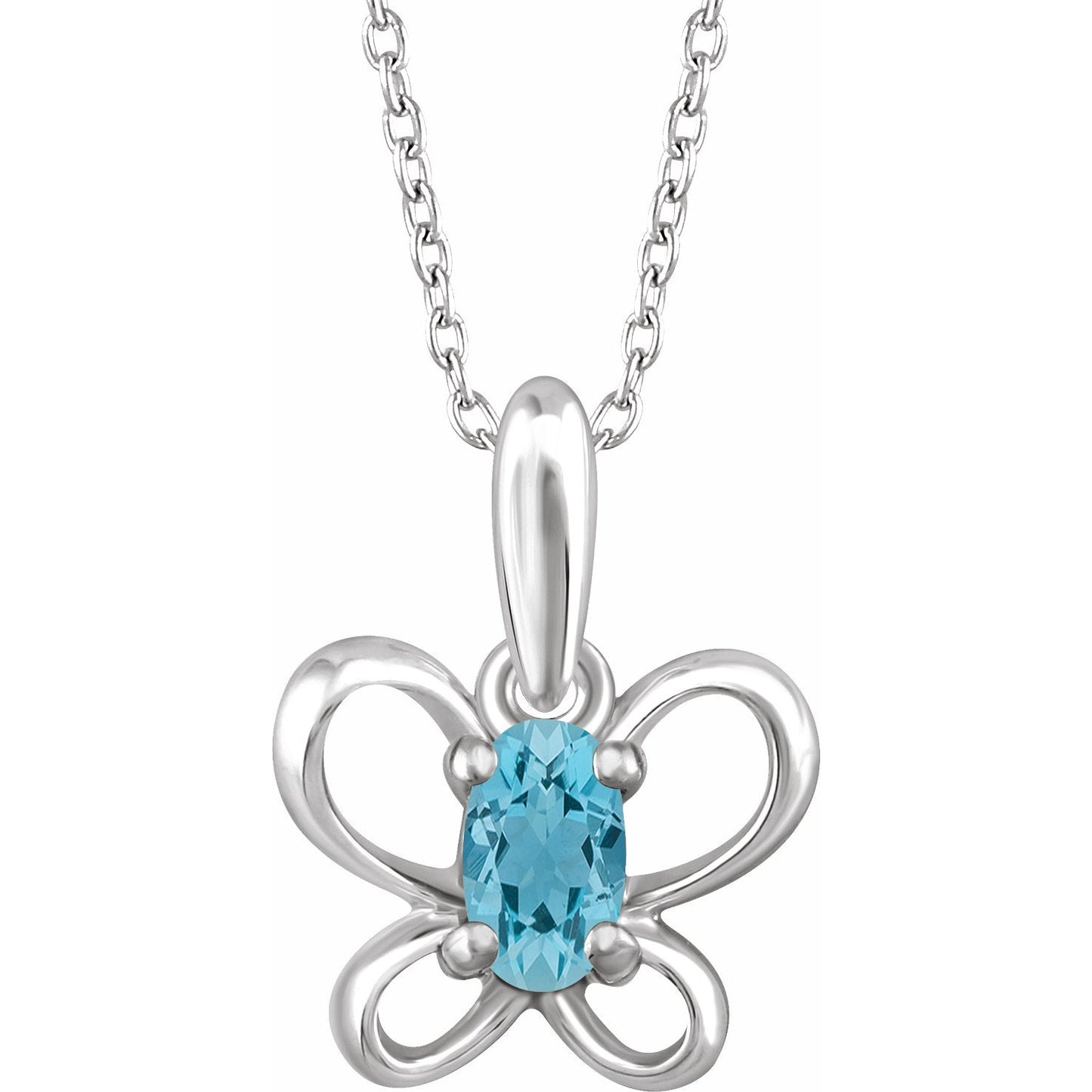 14K White 4x3 mm Oval March Youth Butterfly Birthstone 15 Necklace