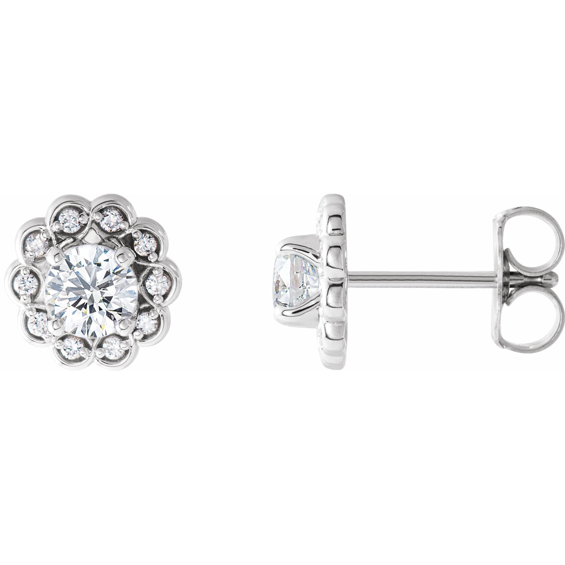 14K White 5/8 CTW Diamond Halo-Style Earrings