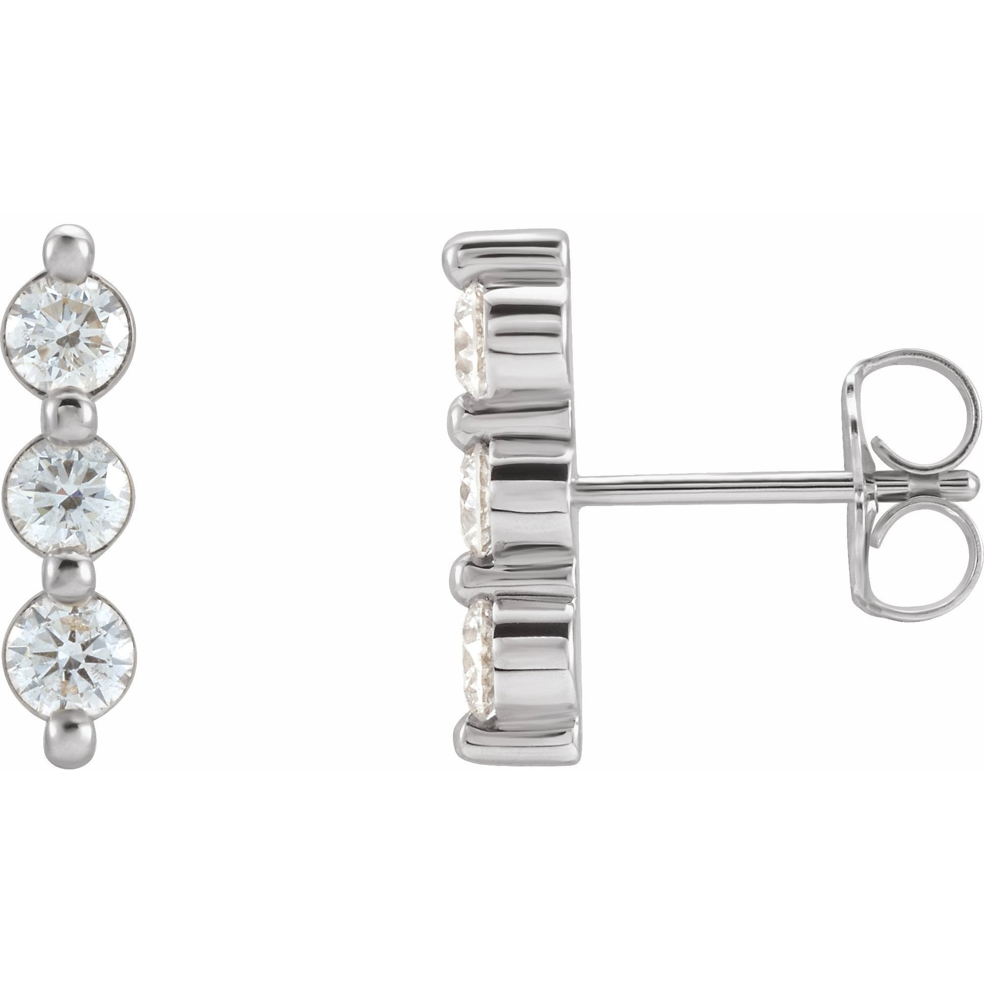 14K White 5/8 CTW Diamond Three-Stone Bar Earrings