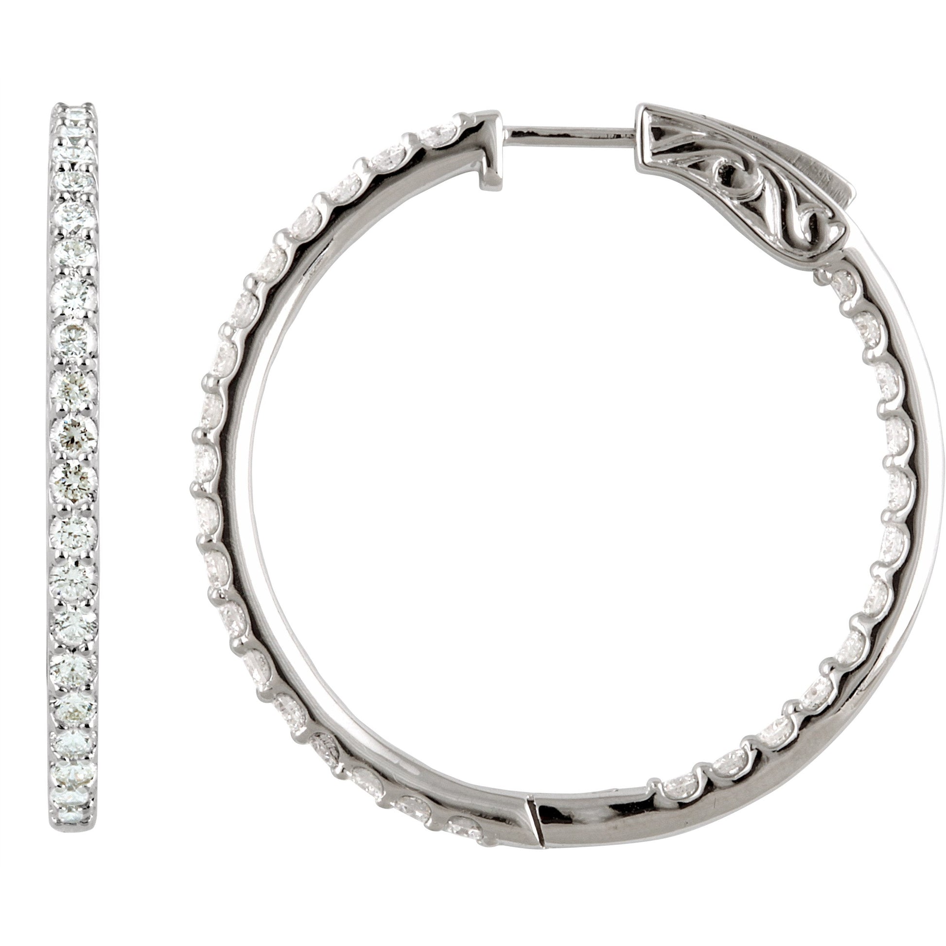 650183 / Set / Diamond / Pair / 41.5 Mm :: 5 Ctw / 14K White / I1, H+ / Polished / Inside-Outside Hinged Hoop Earrings