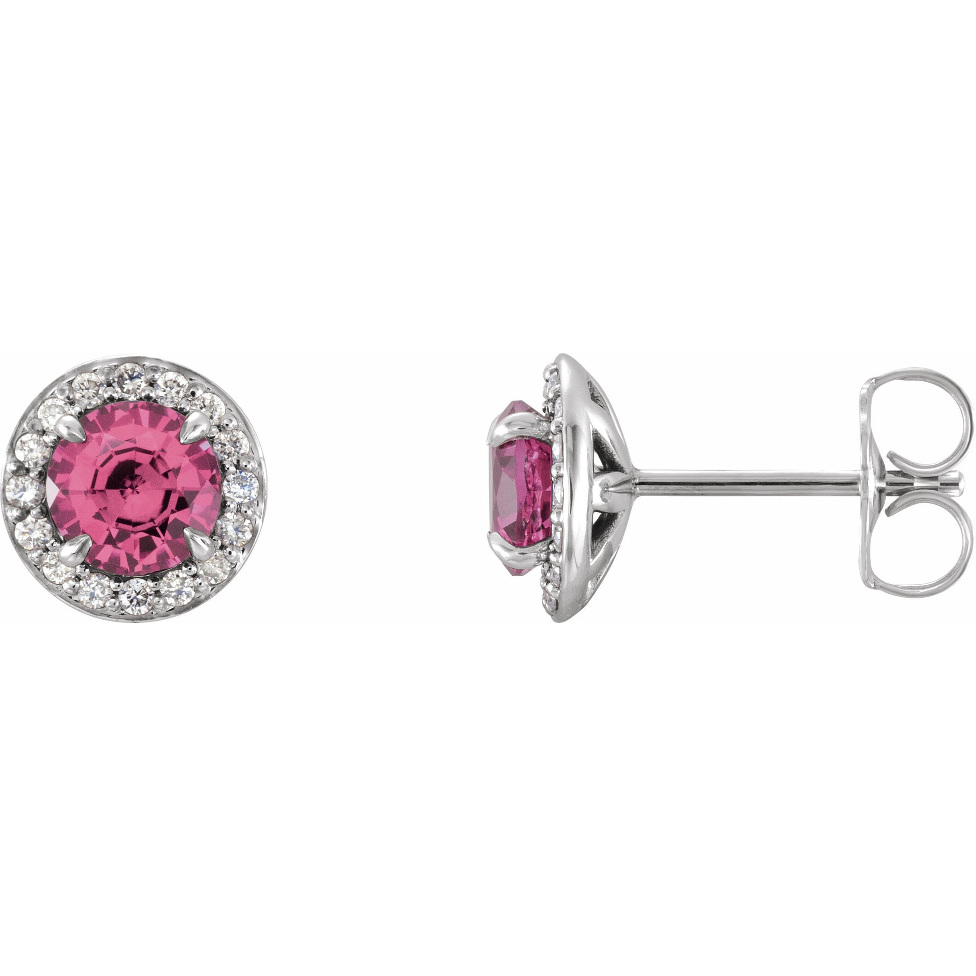 14K White 5 mm Round Pink Tourmaline & 1/8 CTW Diamond Earrings