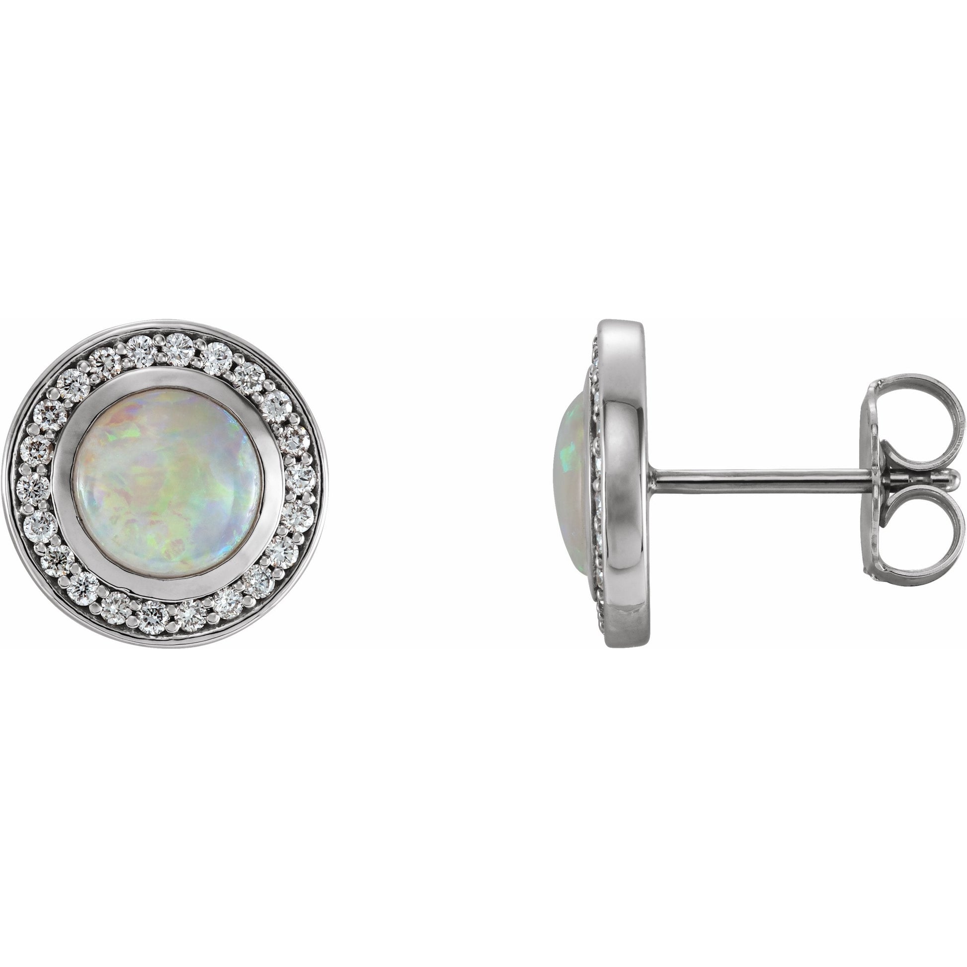 86481 / Set / 14K White / Opal / 6 Mm / Pair / Polished / Genuine Opal And 1/5 Ctw Diamond Earrings