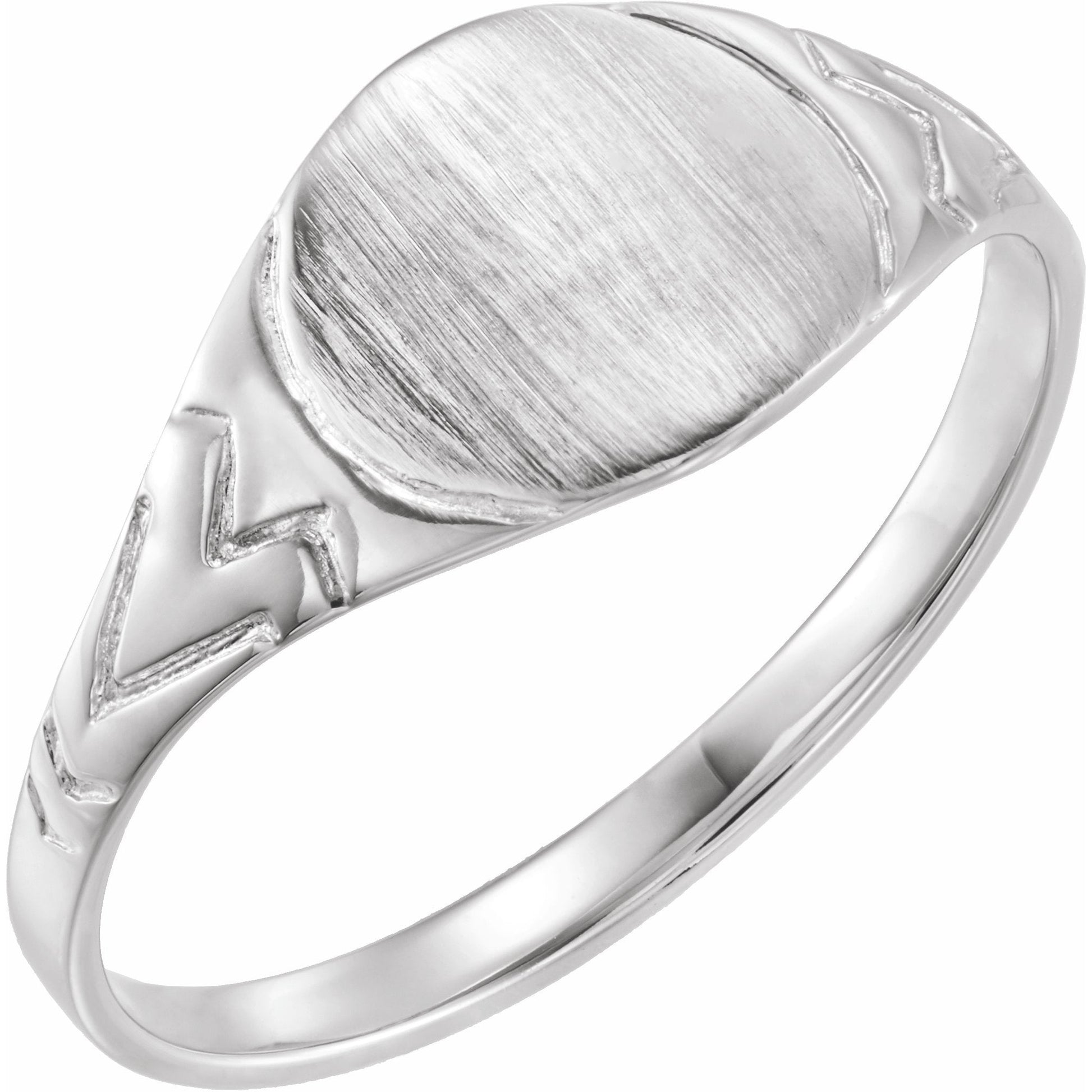 19311 / 14K White / Round / 6 Mm / Brush Finished / Polished / Signet Ring