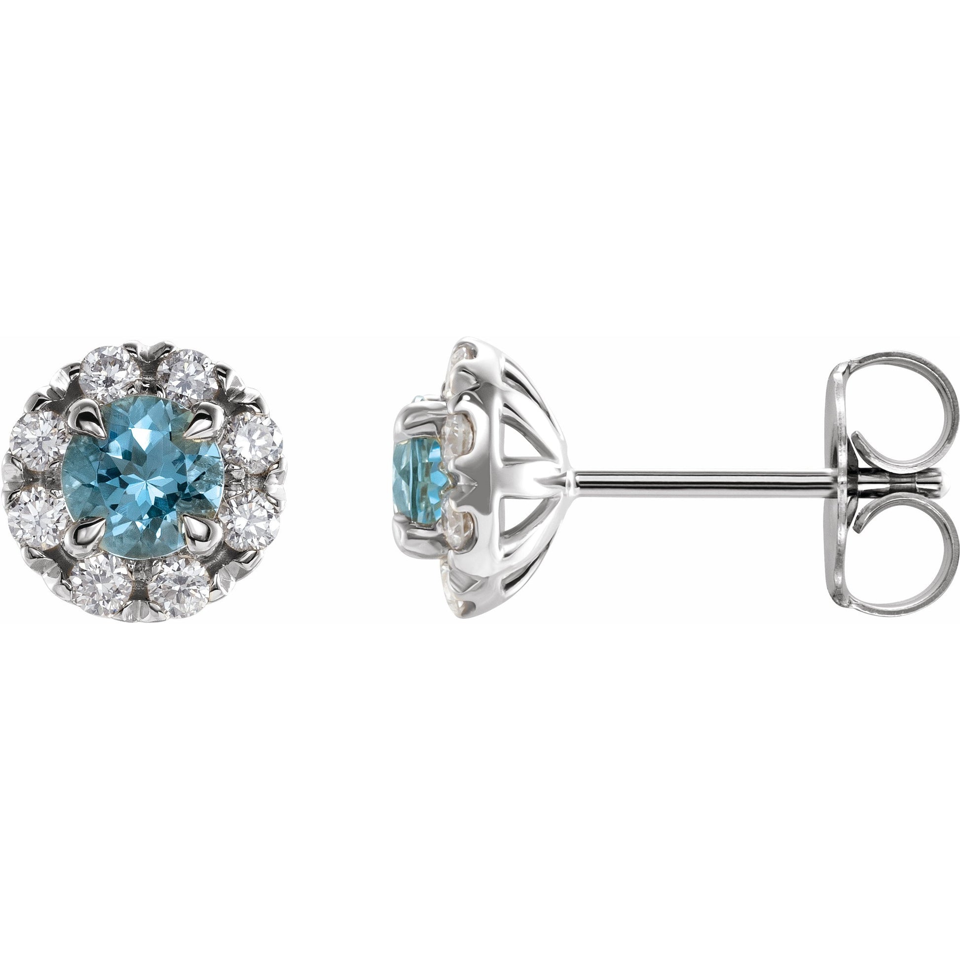 86971 / Set / 14K White / Aquamarine / 6 Mm / 1/3 Ctw / Pair / Polished / Genuine Aquamarine And 1/3 Ctw Diamond Earrings