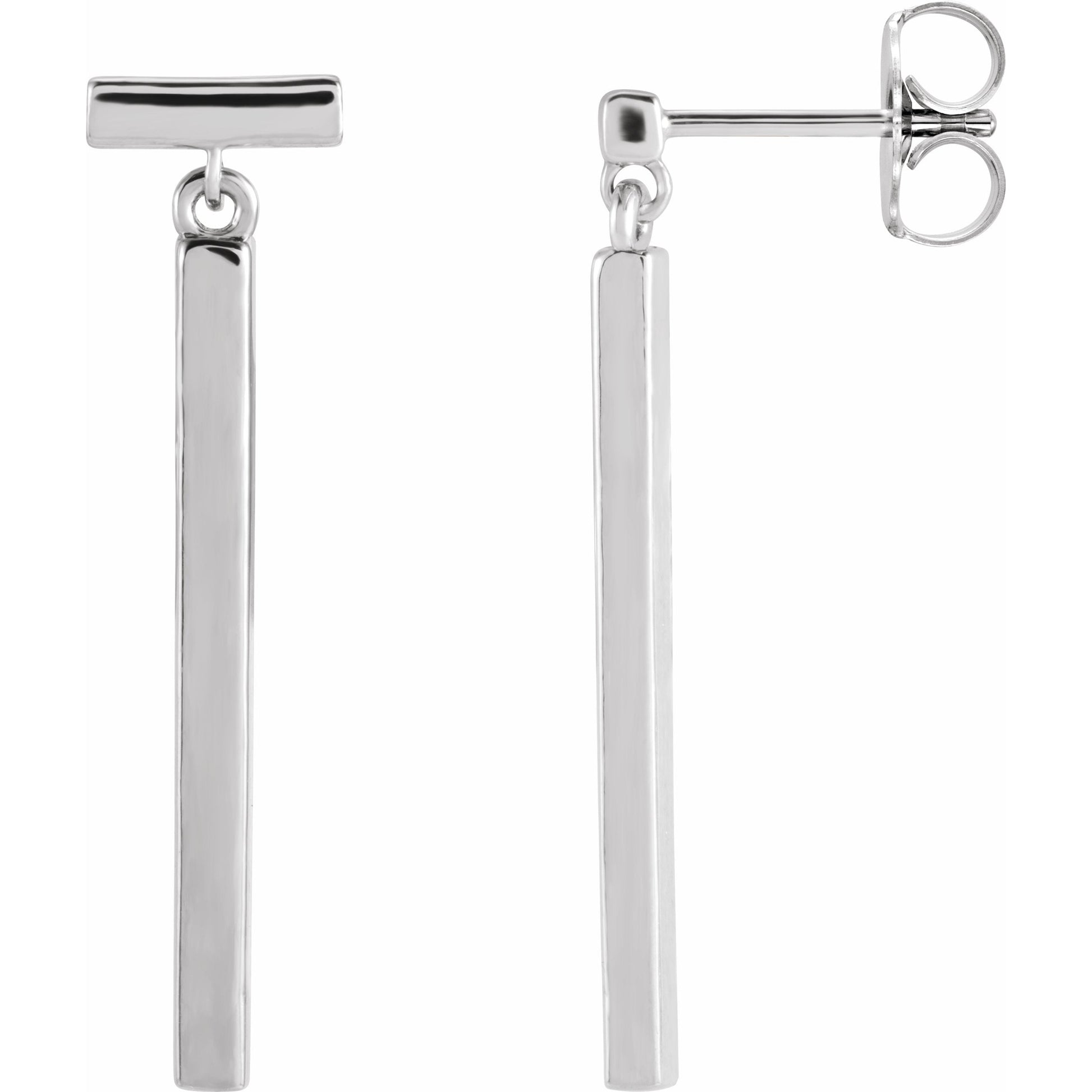 87209 / Earring / 14K White / Pair / Friction Backs Included / Polished / Bar Dangle Earrings