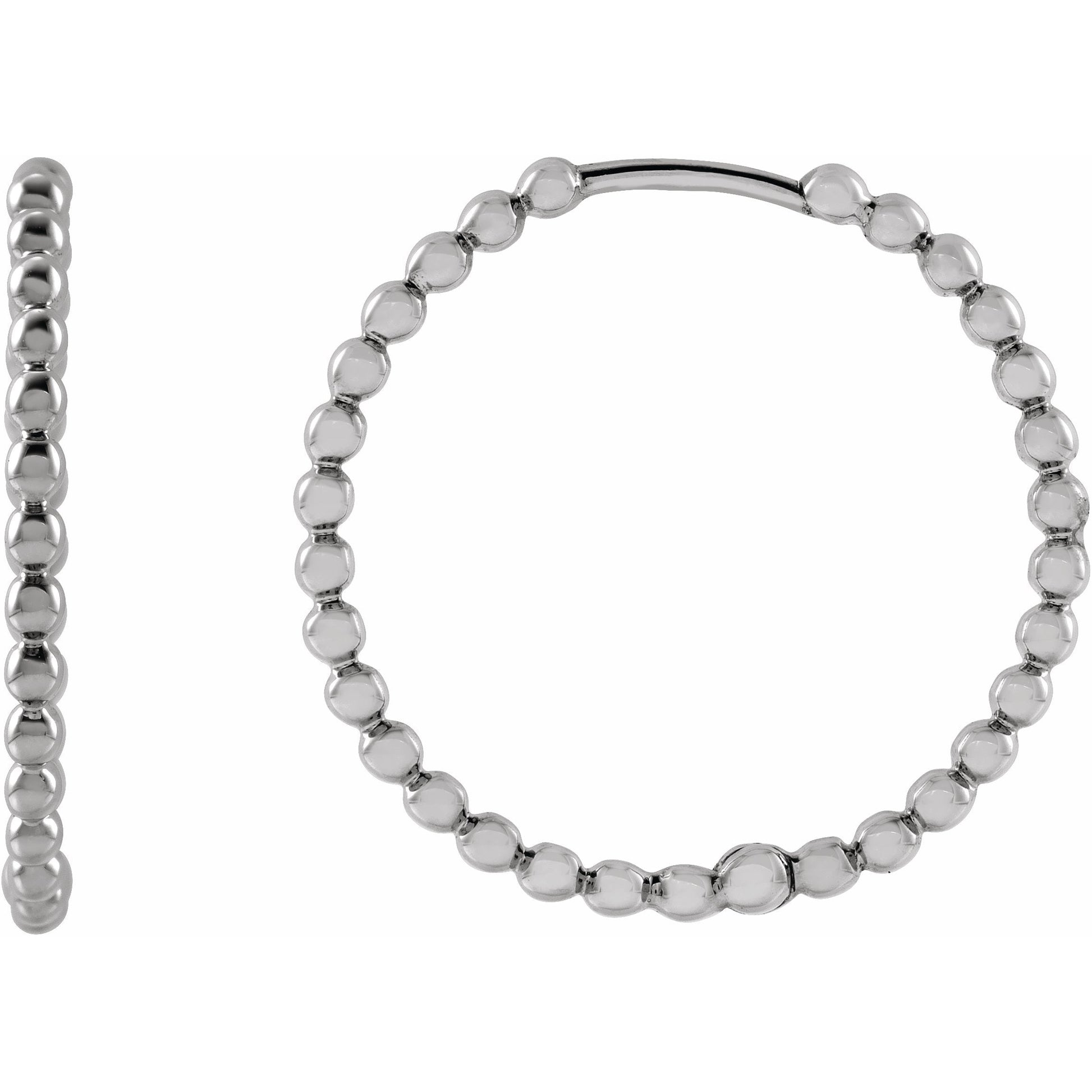 87534 / 14K White / 20 Mm / Pair / Polished / Beaded Hoop Earrings