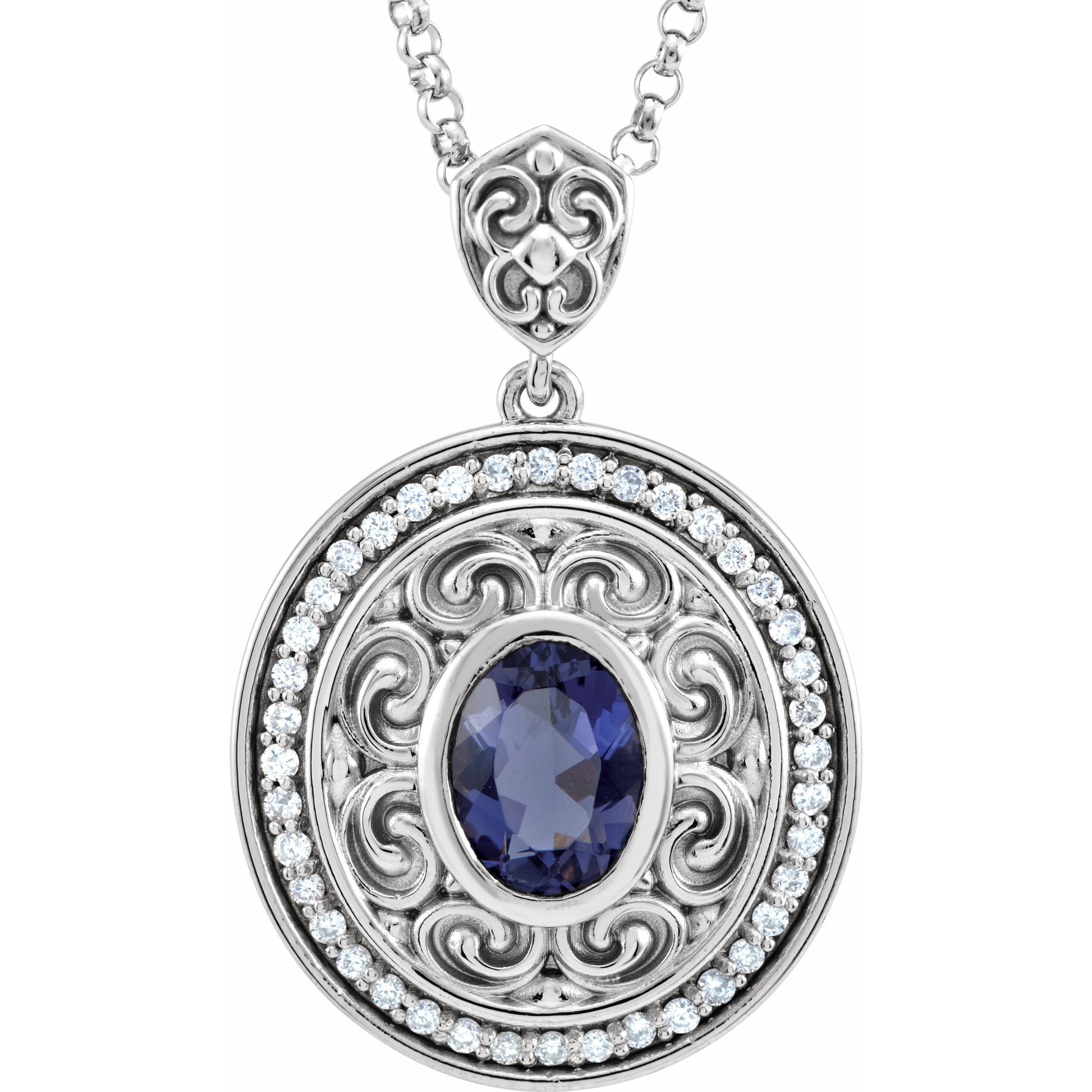 85704 / Necklace / Set / 14K White / 29.3 X 19.1 Mm / 18 In / Polished / Genuine Iolite And 1/5 Ctw Diamond Necklace