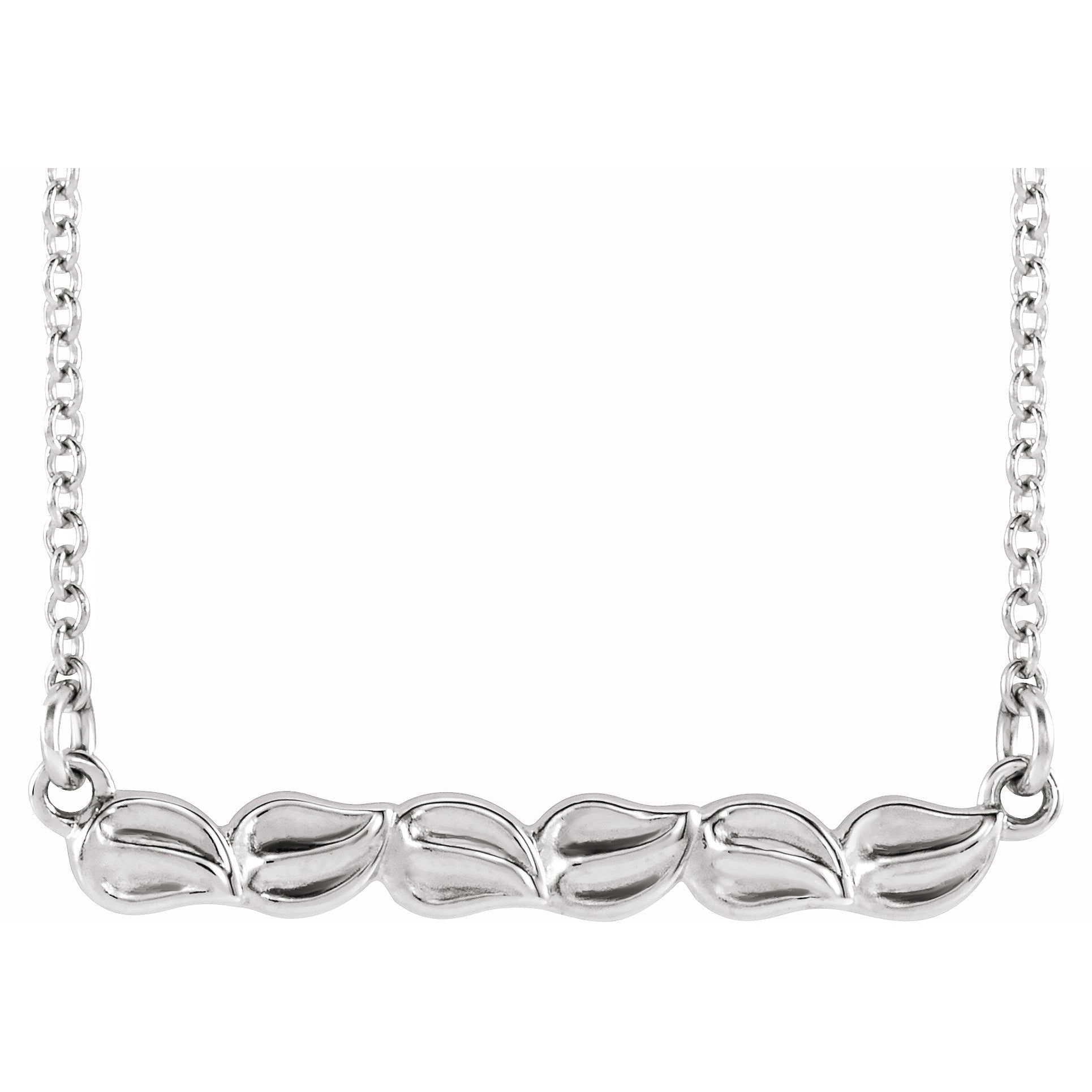 86727 / Necklace / 14K White / Polished / Leaf Bar Necklace