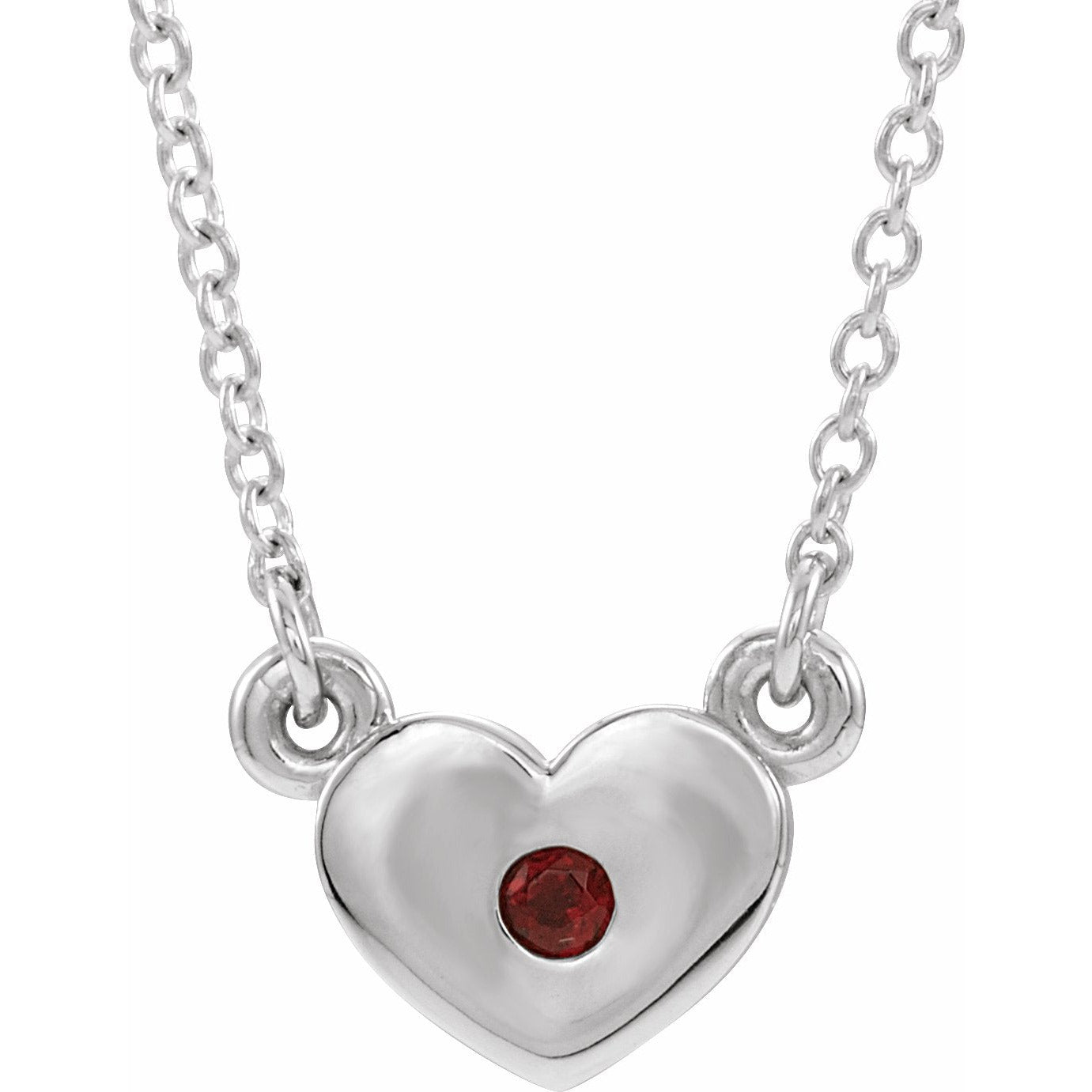 14K White Mozambique Garnet Heart 16 Necklace