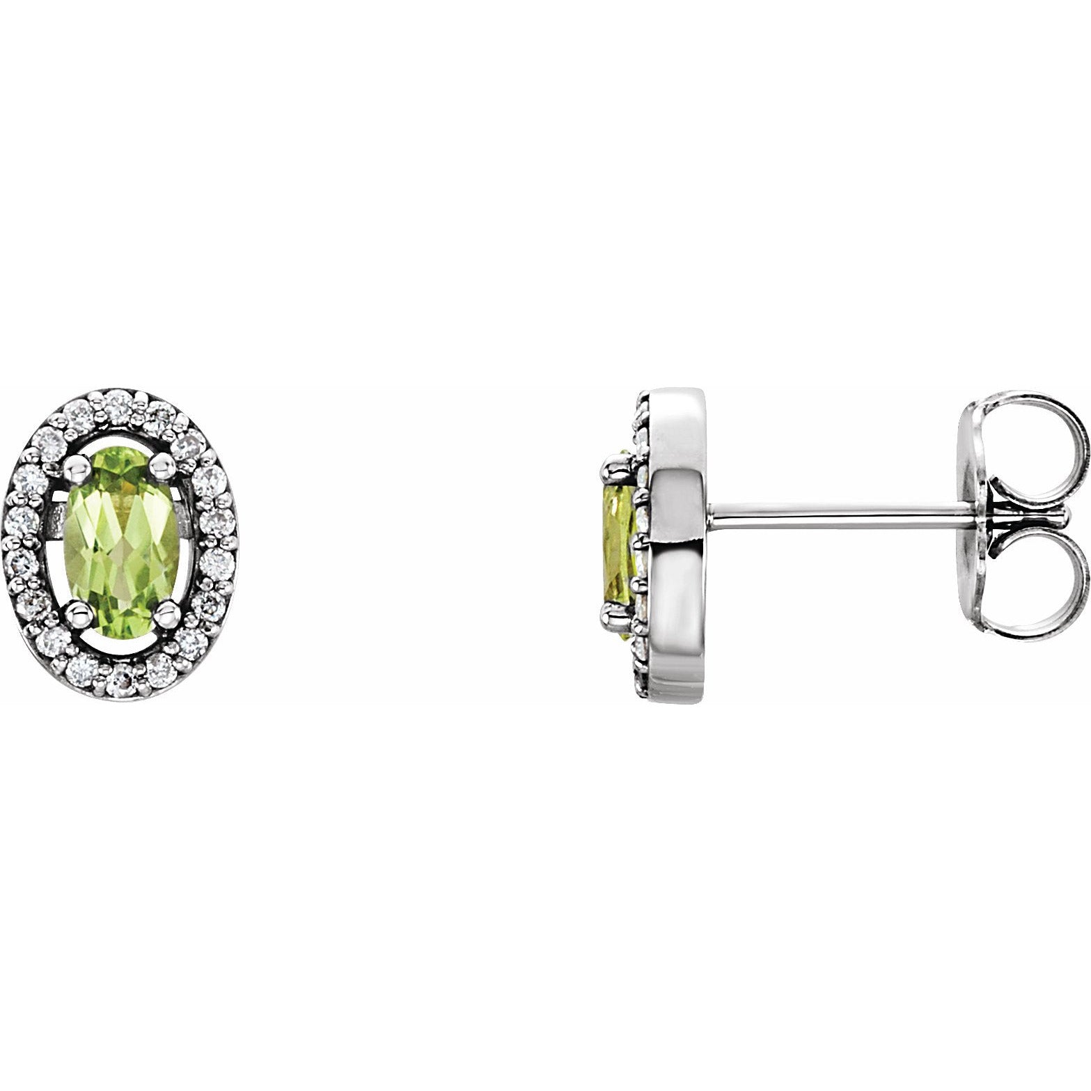 86070 / Set / 14K White / Peridot / 5 X 3 Mm / 1/10 Ctw / Pair / Peridot And .08Ctw Diamond Earrings With Backs