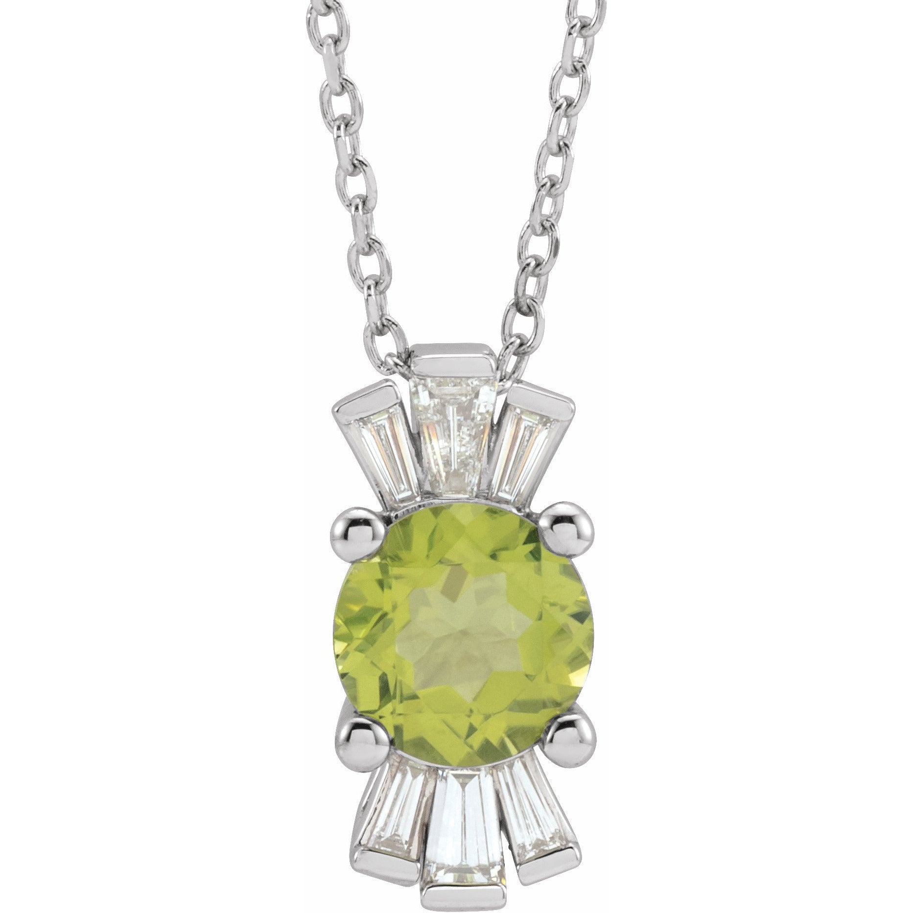 14K White Peridot & 1/6 CTW Diamond 16-18 Necklace