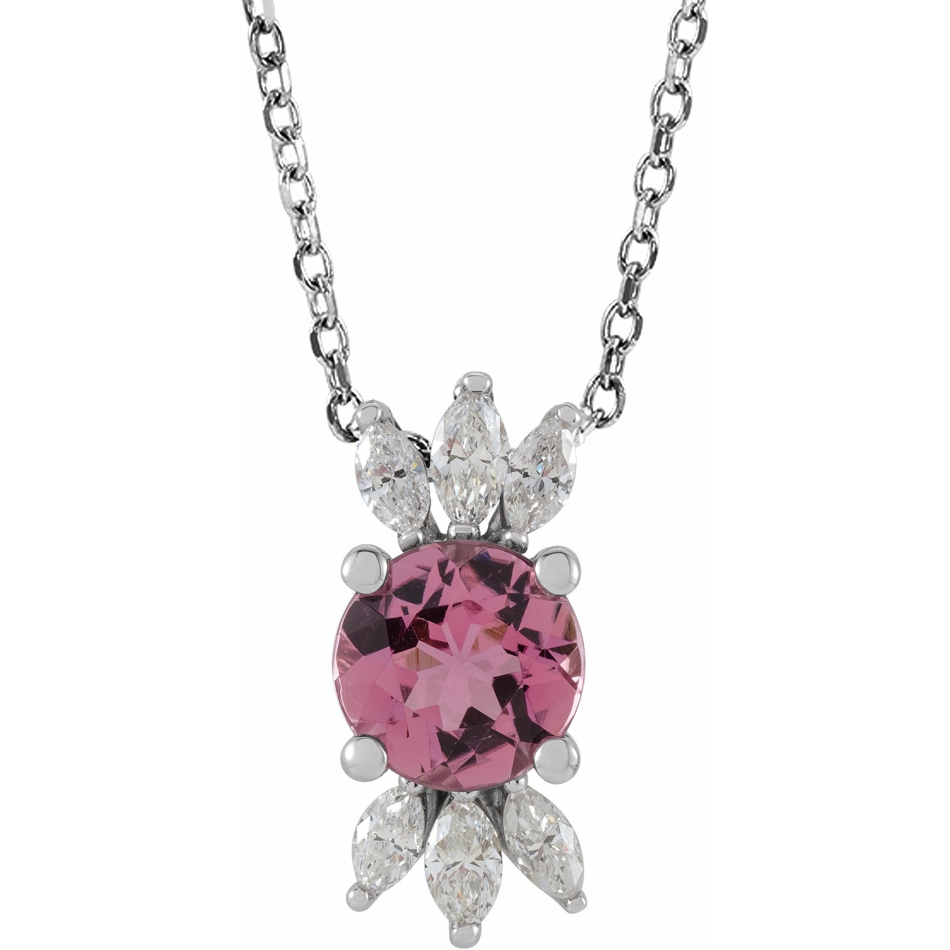 14K White Pink Tourmaline & 1/5 CTW Diamond 16-18 Necklace