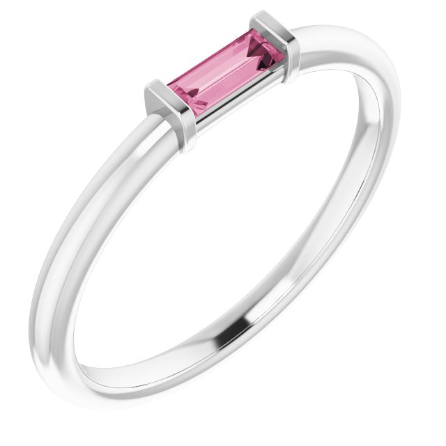 122887 / Set / 14K White / Pink Tourmaline / 4 X 2 Mm / Polished / Pink Tourmaline Stackable Ring