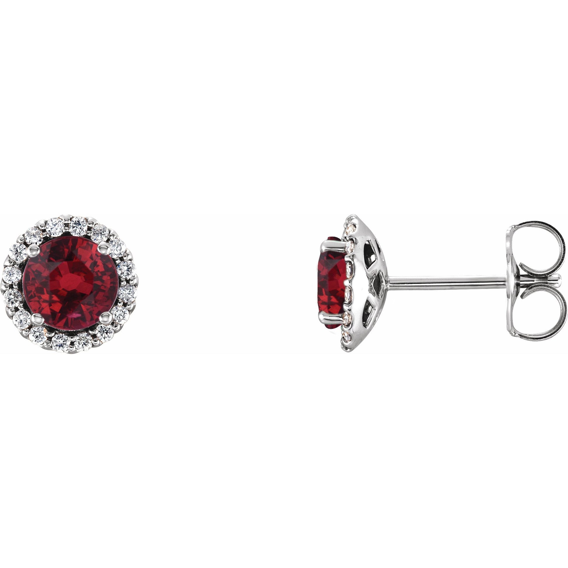 14K White Ruby & 1/6 CTW Diamond Earrings