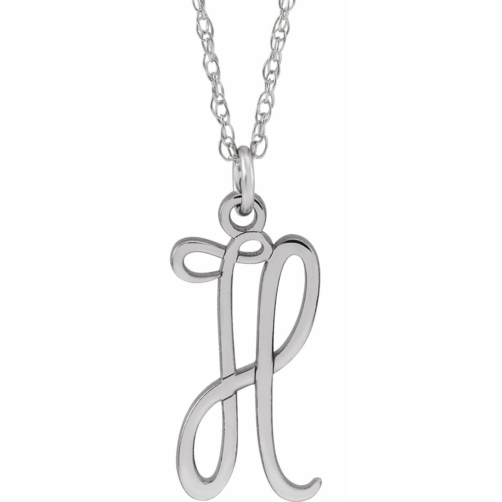 87090 / 14K White / H / 16-18 In / Polished / Script Initial Necklace