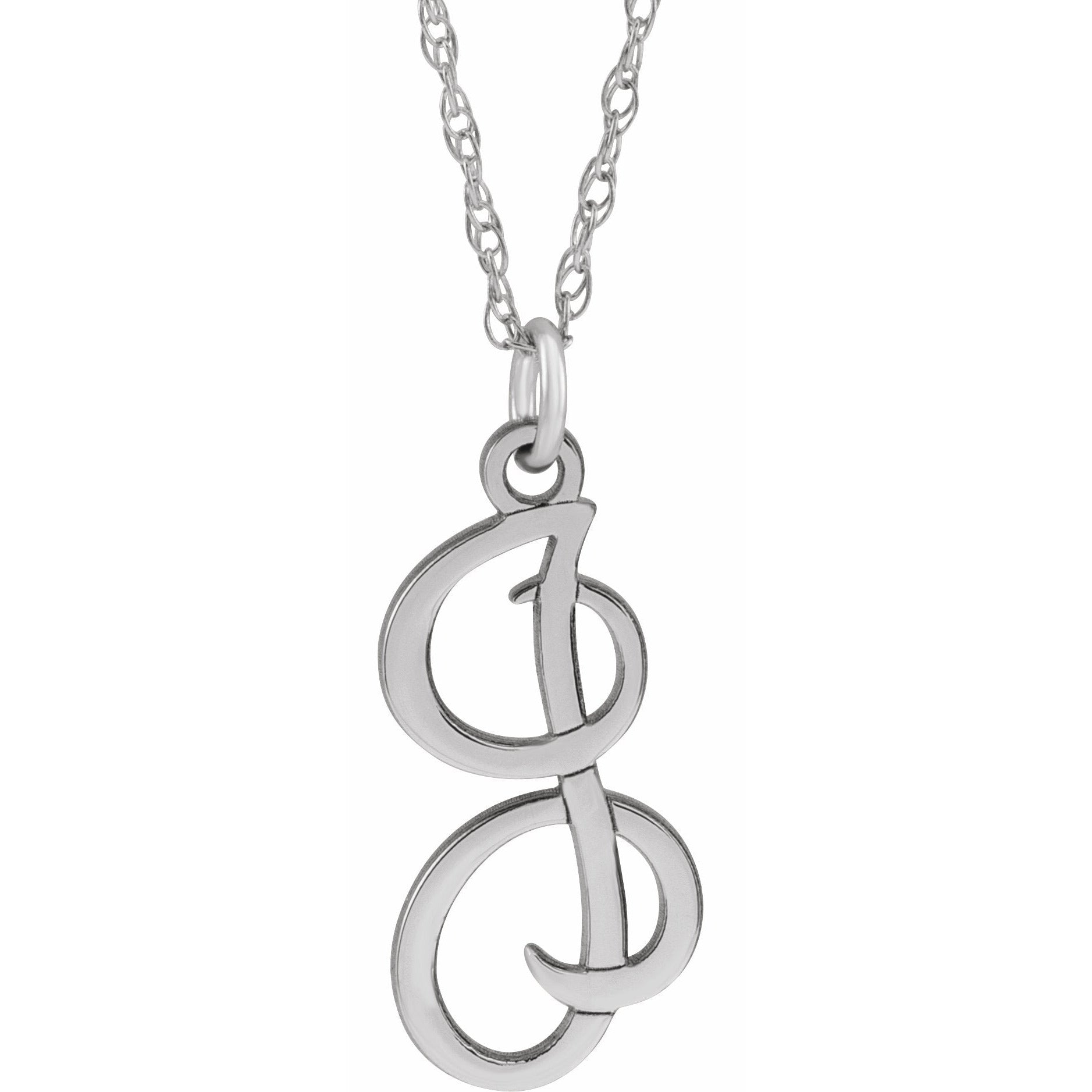 87090 / 14K White / I / 16-18 In / Polished / Script Initial Necklace