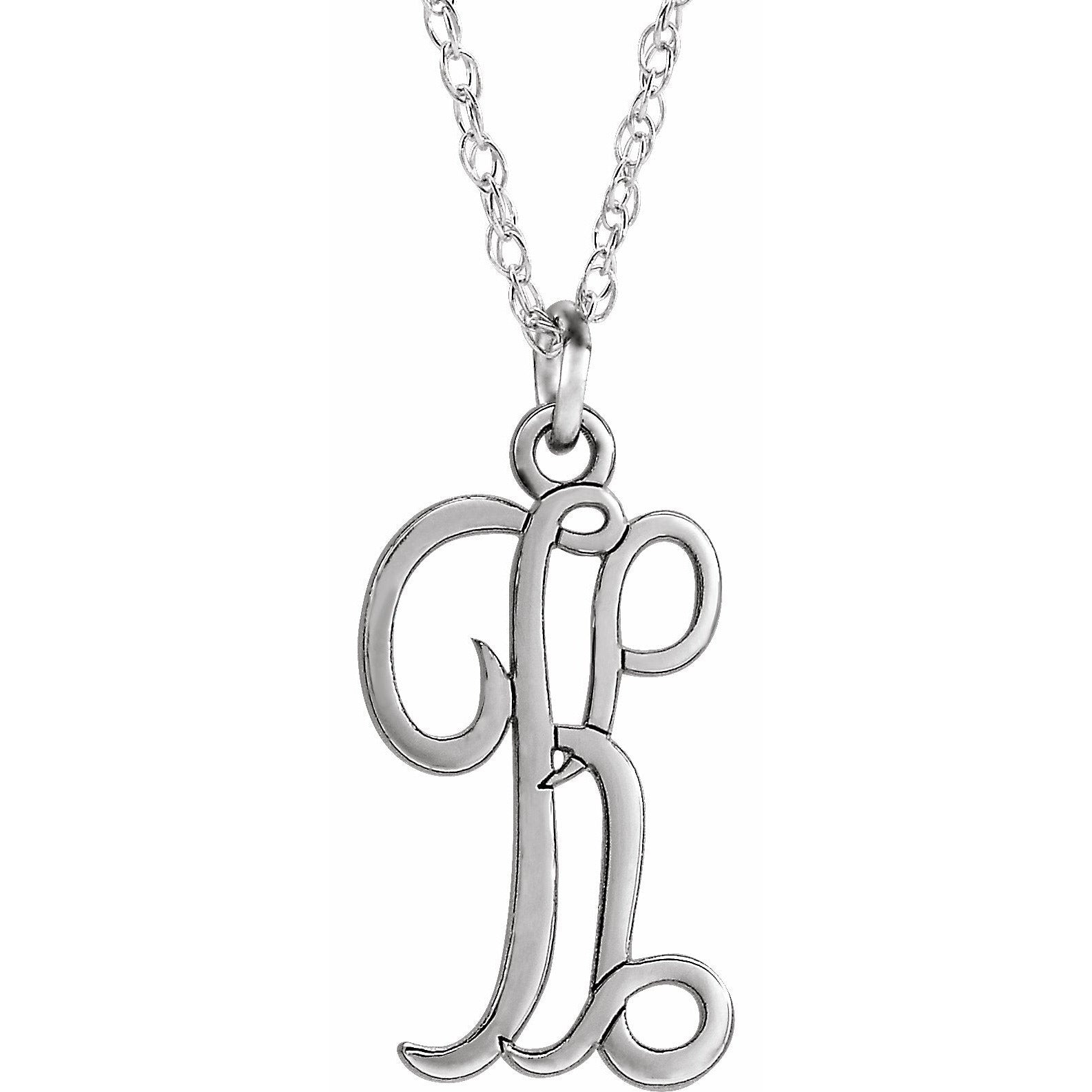 87090 / 14K White / K / 16-18 In / Polished / Script Initial Necklace