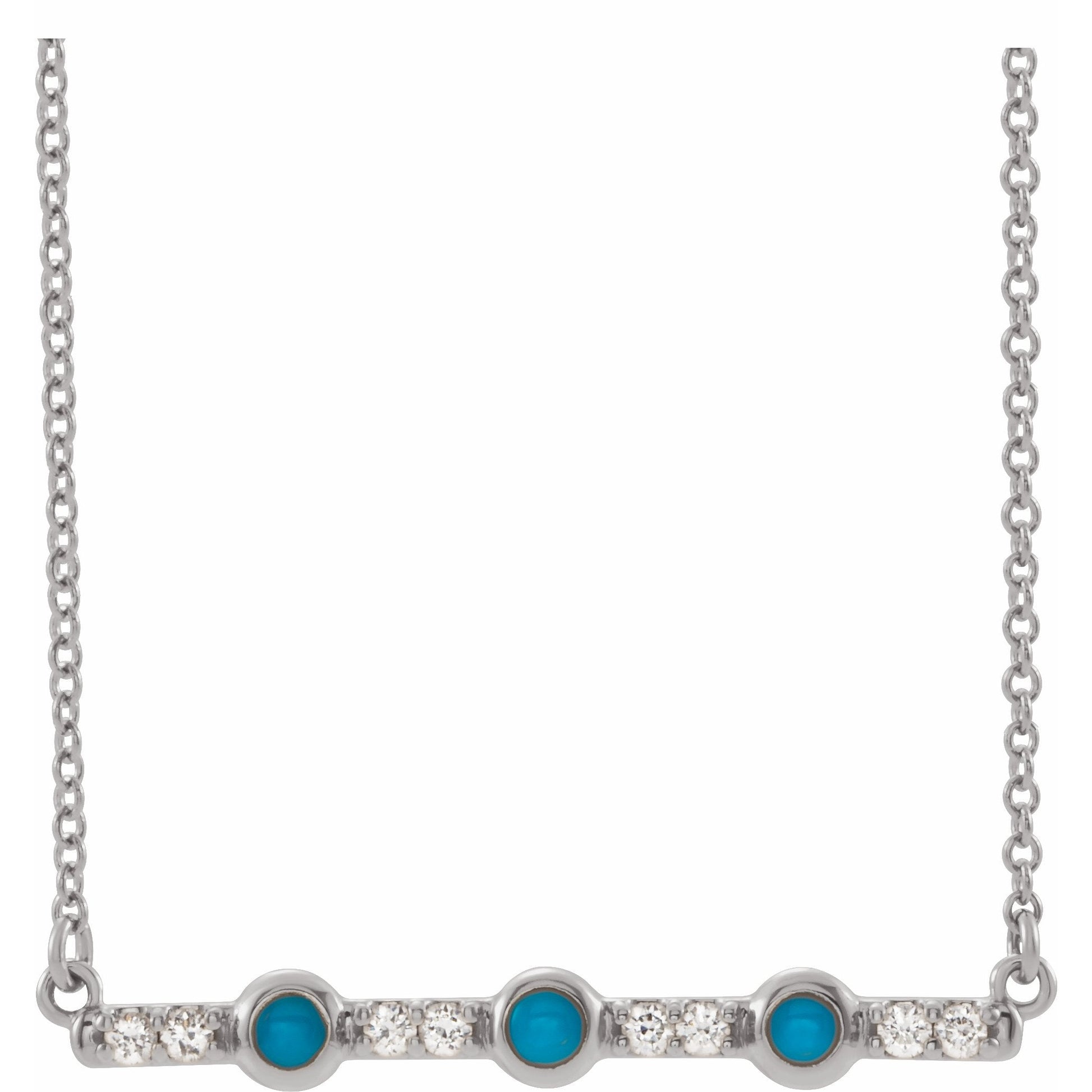 86817 / Necklace / Set / 14K White / 30.3 X 4.2 Mm / 18 In / Polished / Turquoise And 1/8 Ctw Diamond Bar Necklace