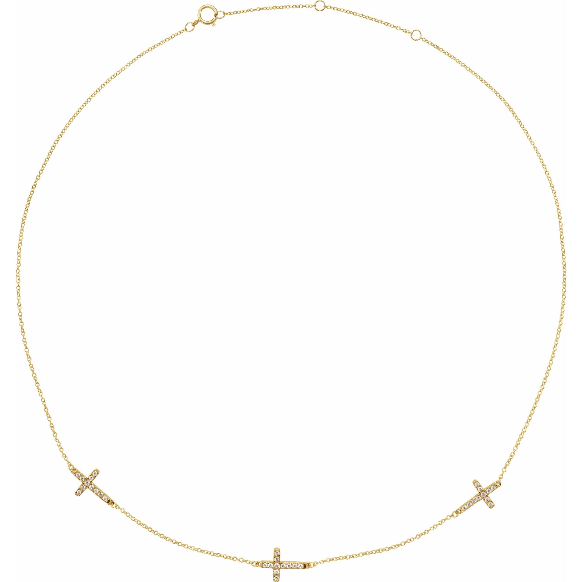 653452 / Set / 14K Yellow / 3-Station / 16-18 In / Polished / 1/4 Ctw Diamond 3-Station Cross Necklace