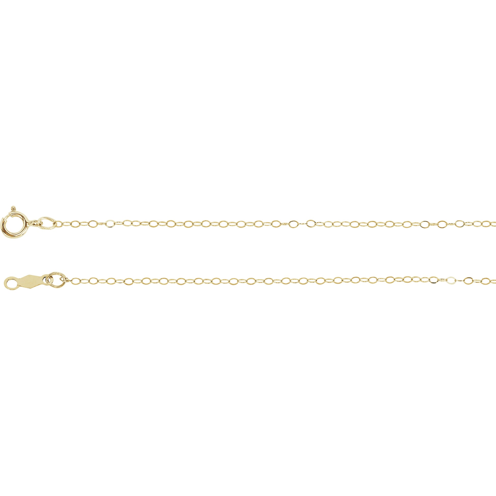 14K Yellow 1 mm Flat Cable 7 Chain with Spring Ring